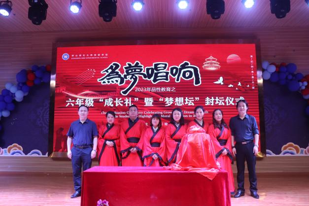 六年级各班级节目汇演在小学部儿童剧场欢歌乐舞、展露风华。节目表演后,“梦想坛”封坛仪式正式开始。