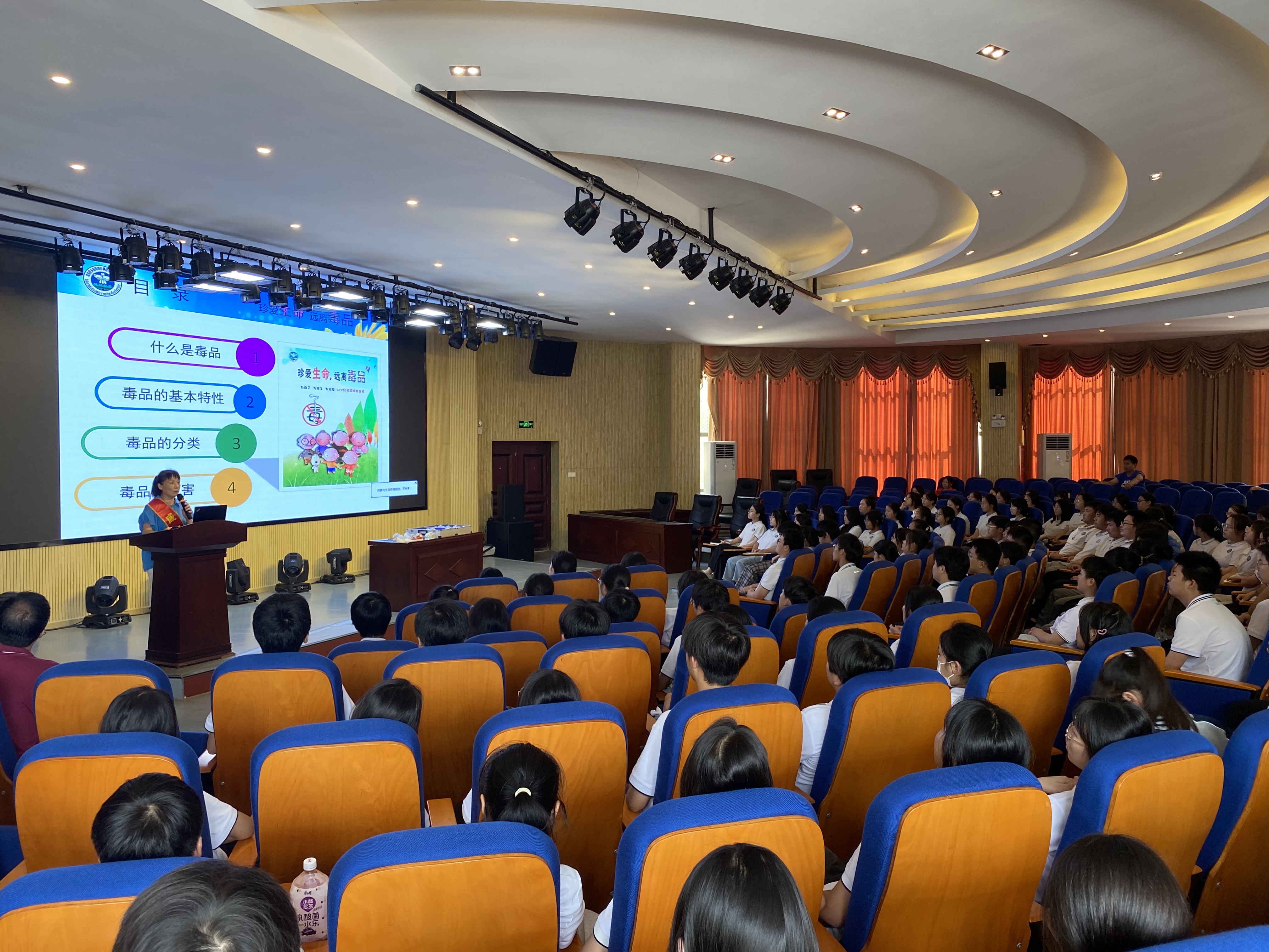 中心戒毒社区宣讲员殷桂芳通过PPT讲解,用通俗易懂的语言向学生们讲解“毒品的种类、特征、危害”以及“如何识毒、防毒、拒毒”等知识,让学生们了解毒品的多变性及危险性,倡导学生们养成良好的生活和学习习惯,远离娱乐场所,不接受不明物品,不接触毒品,时刻保持高度警惕,不断提升自我保护意识。同时,呼吁同学们向亲友传播禁毒知识,争做拒毒防毒“小小宣传员”。