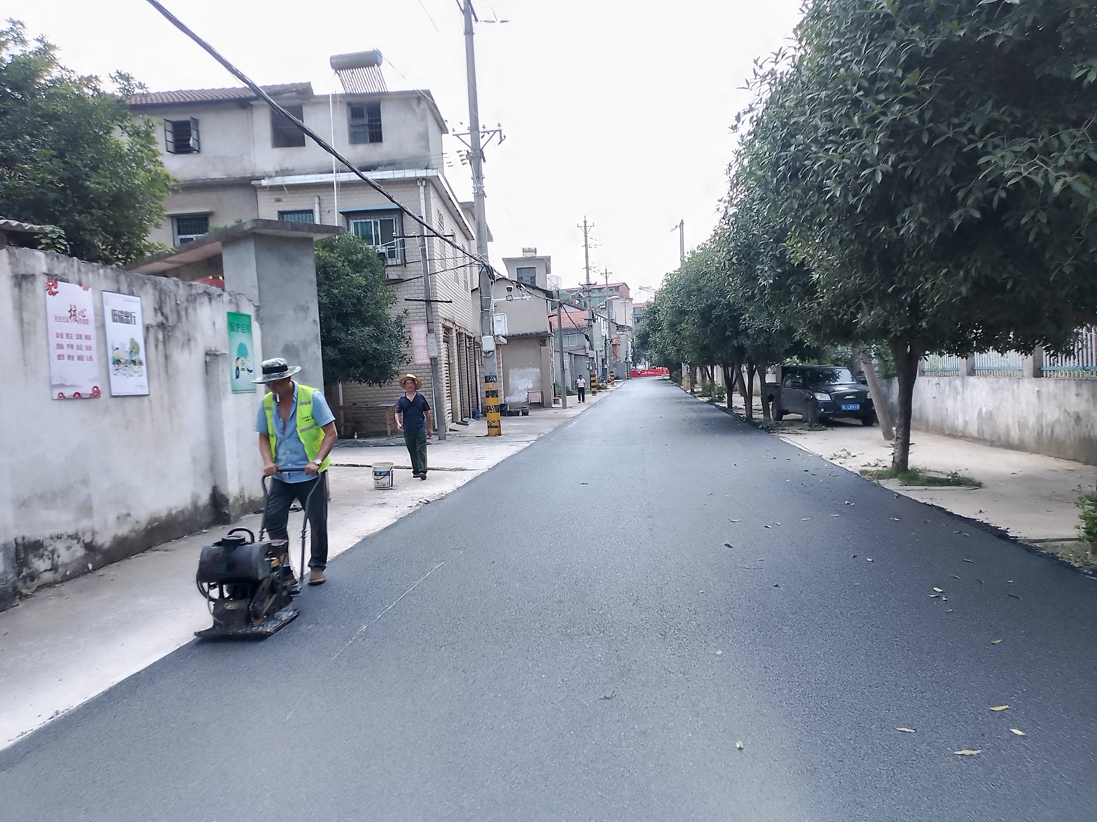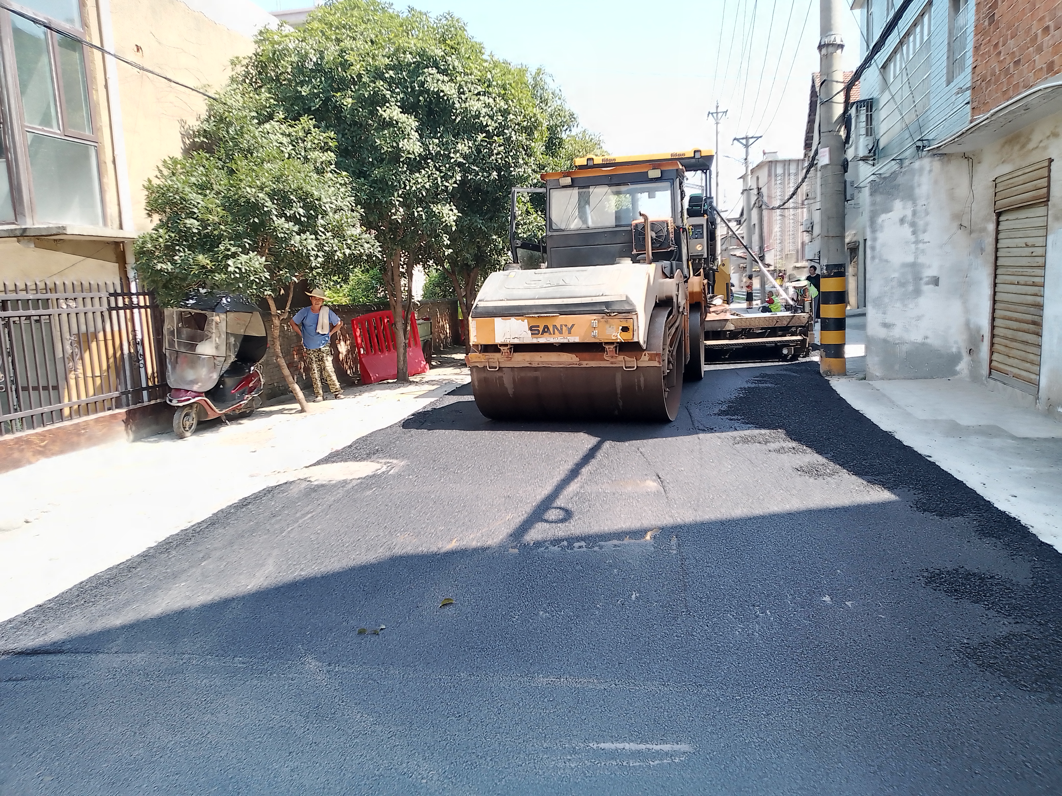 开始施工时,周边居民纷纷拿起扫把清理道路两边杂物、联系占道车主挪车等,干部群众齐心协力,确保路面刷黑并顺利铺设。