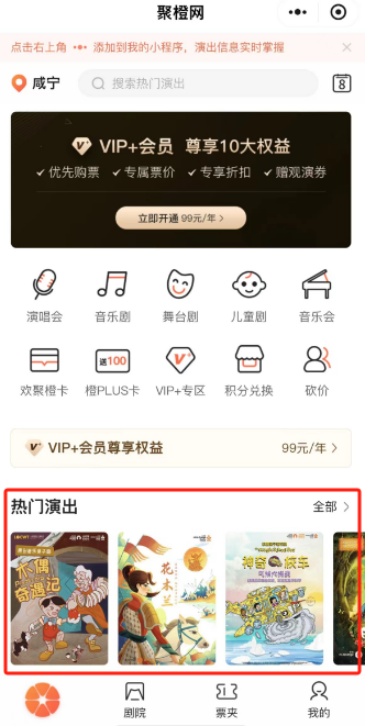 2、领取方式:关注“香城大剧院”微信公众号,点击菜单栏 “演出购票”,点击首页内任意一场“热门演出”领取消费券;