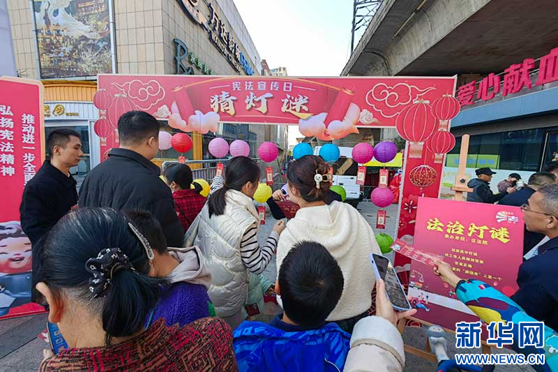 在法律咨询展位边,专业律师耐心答疑,为前来咨询的居民剖析房产纠纷、劳动维权等常见法律难题。 “崛起在巴黎,请打一法律名词?”“立法。”在法治灯谜区,市民们抢答热烈,在浓浓趣味中,法律知识润心田。