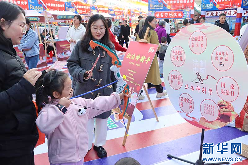 湖北省咸宁市咸安区2024年“宪法宣传周”活动近日在万达广场举行,众多趣玩摊位和咨询法治宣传摊位在现场铺开,来打卡的群众络绎不绝。集印章,兑普法文创大礼包,丰富多彩的普法活动吸引近万名市民参与。