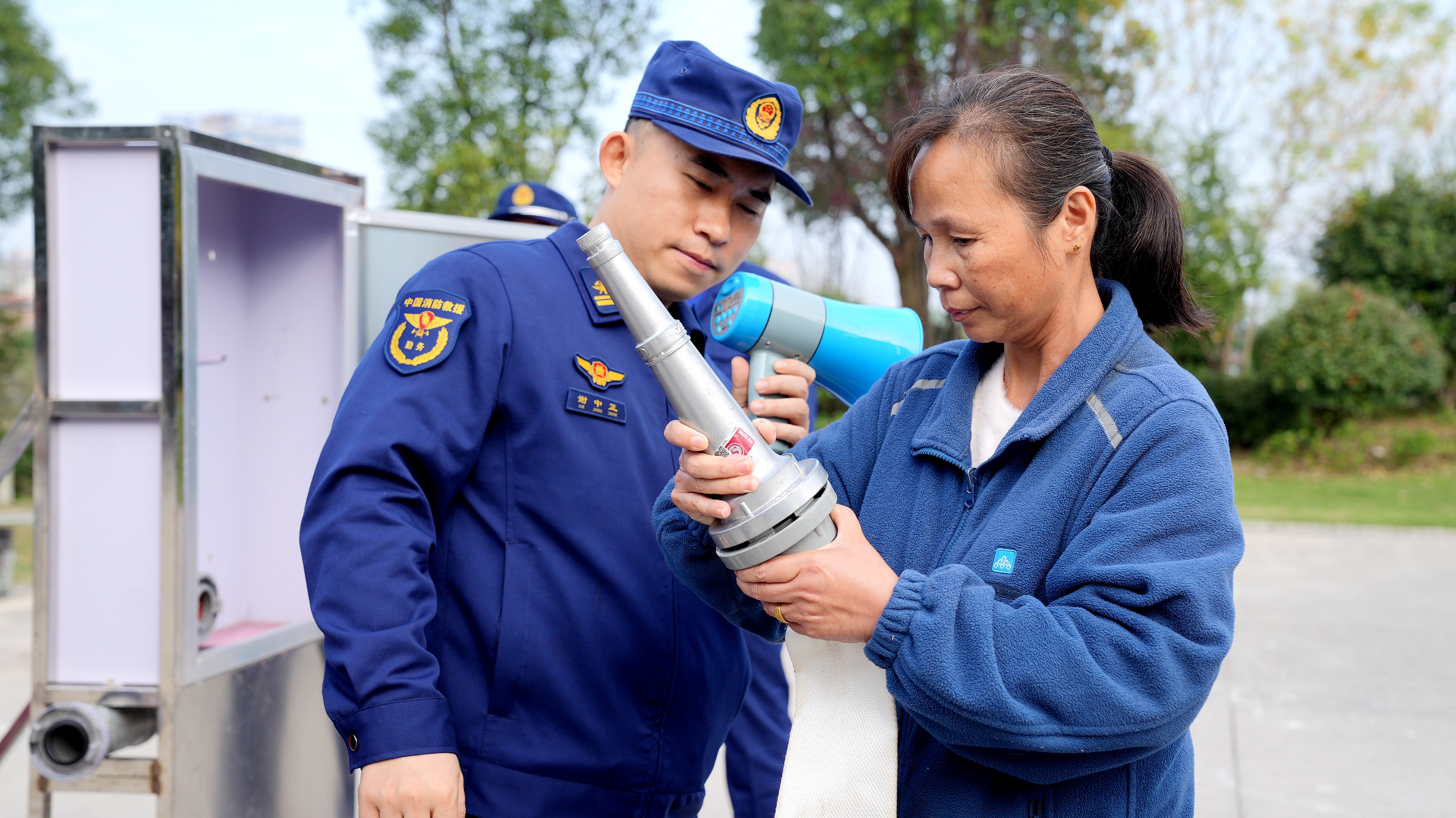 演练中,消防救援人员结合典型社区火灾案例,详细讲解了火灾的危害。在消防器材讲解环节,针对居民日常生活中常见的电器火灾、燃气泄漏、电动车违规充电等安全隐患,消防救援人员逐一拆解风险点,演示了灭火器、消防栓等消防器材的正确使用方法,强调了“小火快跑、浓烟关门”等逃生原则,让大家对消防安全有了更直观、深刻的认识。讲解过程中还穿插了有奖知识问答,吸引大家踊跃参与。