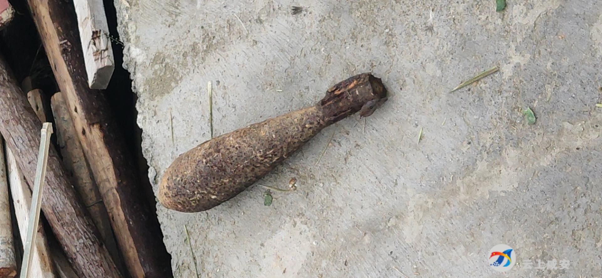 民警立即赶到现场,只见炮弹被放置在村口,不断有村民因好奇前来围观。民警一边疏散群众、保护现场,一边联系咸安公安分局治安大队民警。随后,治安民警与民爆部门工作人员一同赶到,通过鉴定,这是一枚日制迫击炮弹。经分析推测,该枚炮弹可能系战争时期遗留。随后,民警及民爆部门工作人员在确保安全的情况下,将该枚炮弹带离现场,同时叮嘱村民要注意安全,如若后续在山中再次发现疑似炮弹等危险物品一定要及时报警。
