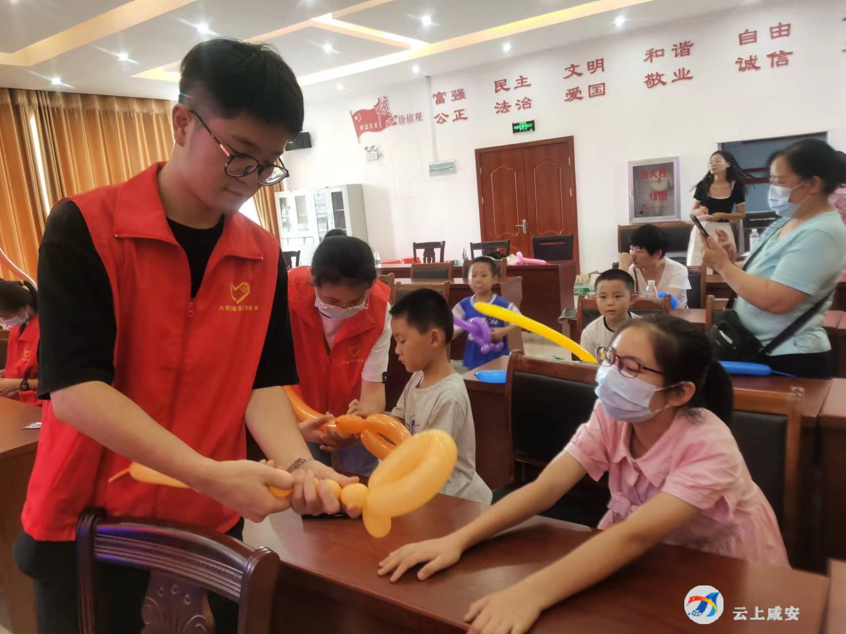 活动还邀请了“返家乡”大学生志愿者教孩子们制作魔法气球,气球在他们的手中变出各种有趣的形状,孩子们围成一圈观察学习,课堂氛围活泼融洽。家长们表示活动既有意思又有意义,希望能多在社区开展此类活动。