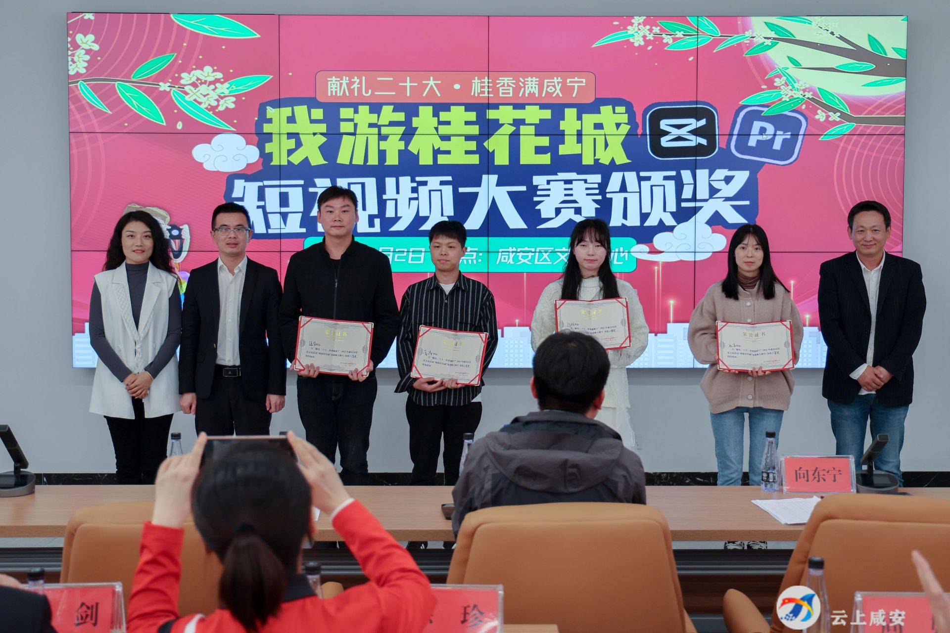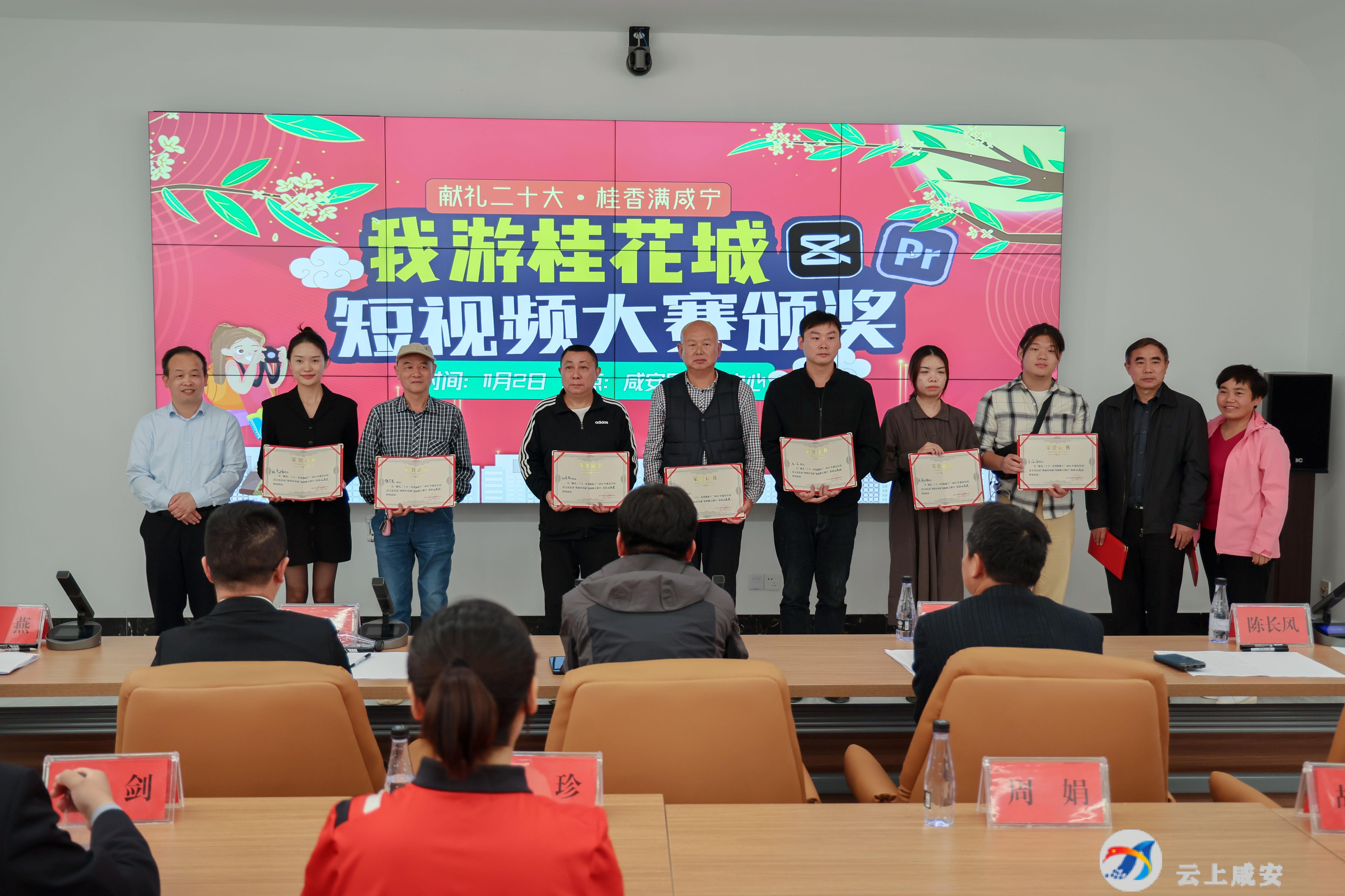 云上咸安报道 11月2日下午,“献礼二十大 桂香满咸宁 我游桂花城”短视频大赛评审会在区文体中心进行,区委常委、区委宣传部部长徐珍,区人大常委会副主任杨剑,区政协副主席周娟出席活动并颁奖,进入复评环节作品的作者共40余人参加活动。