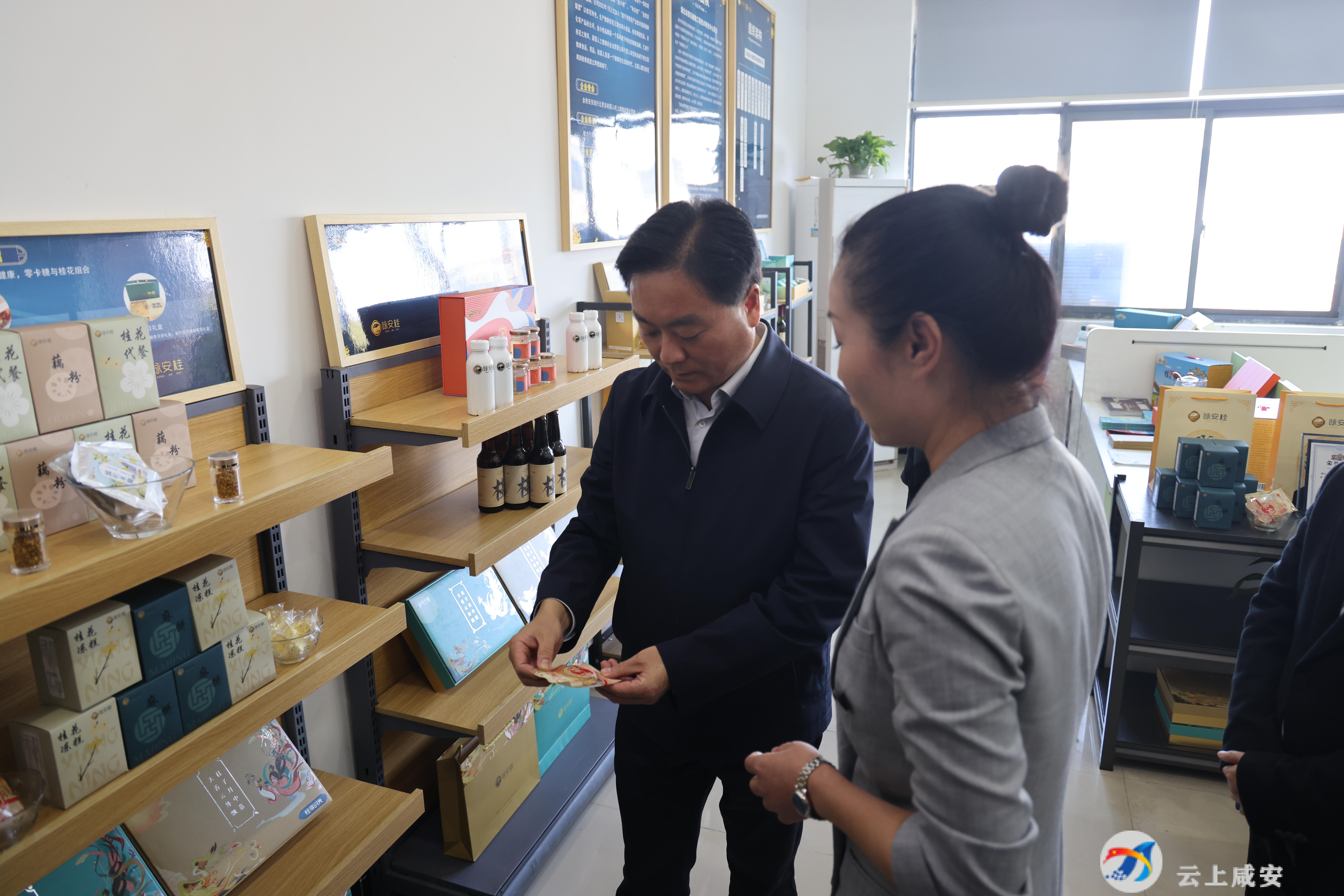 在咸宁南桂食品科技有限公司、湖北桂香满园食品有限公司、湖北咏安桂食品科技有限公司等企业,顾兴旺详细了解企业发展规划、运营模式和产品销售情况,希望各企业要加大与头部电商企业沟通合作,把咸安优质桂花产品通过线上渠道推广出去,为更多消费者提供更好服务。
