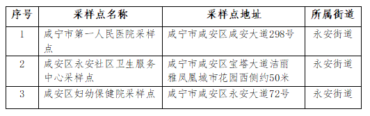 在咸宁主城区共设置采样点90个,其中咸安区区直医疗机构采样点3个,固定便民采样点32个,临时便民采样点5个,各级各类学校(包含幼儿园)流动采样点50个。(采样点地址附后,不含学校流动采样点)