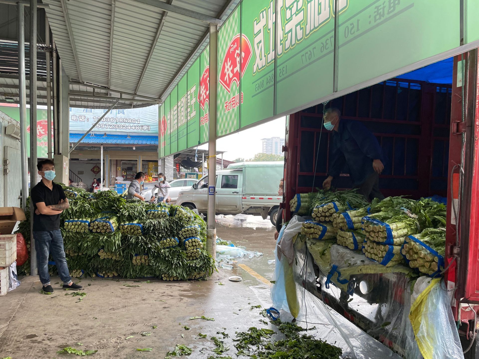 咸宁亿丰农贸市场是咸安区城区最大的农产品集散市场,在市场内,水产、肉类、水果、蔬菜、粮油等各类生活物资丰富,冻库内蔬菜有大量储存,还有大货车源源不断地在向商户运送蔬菜。