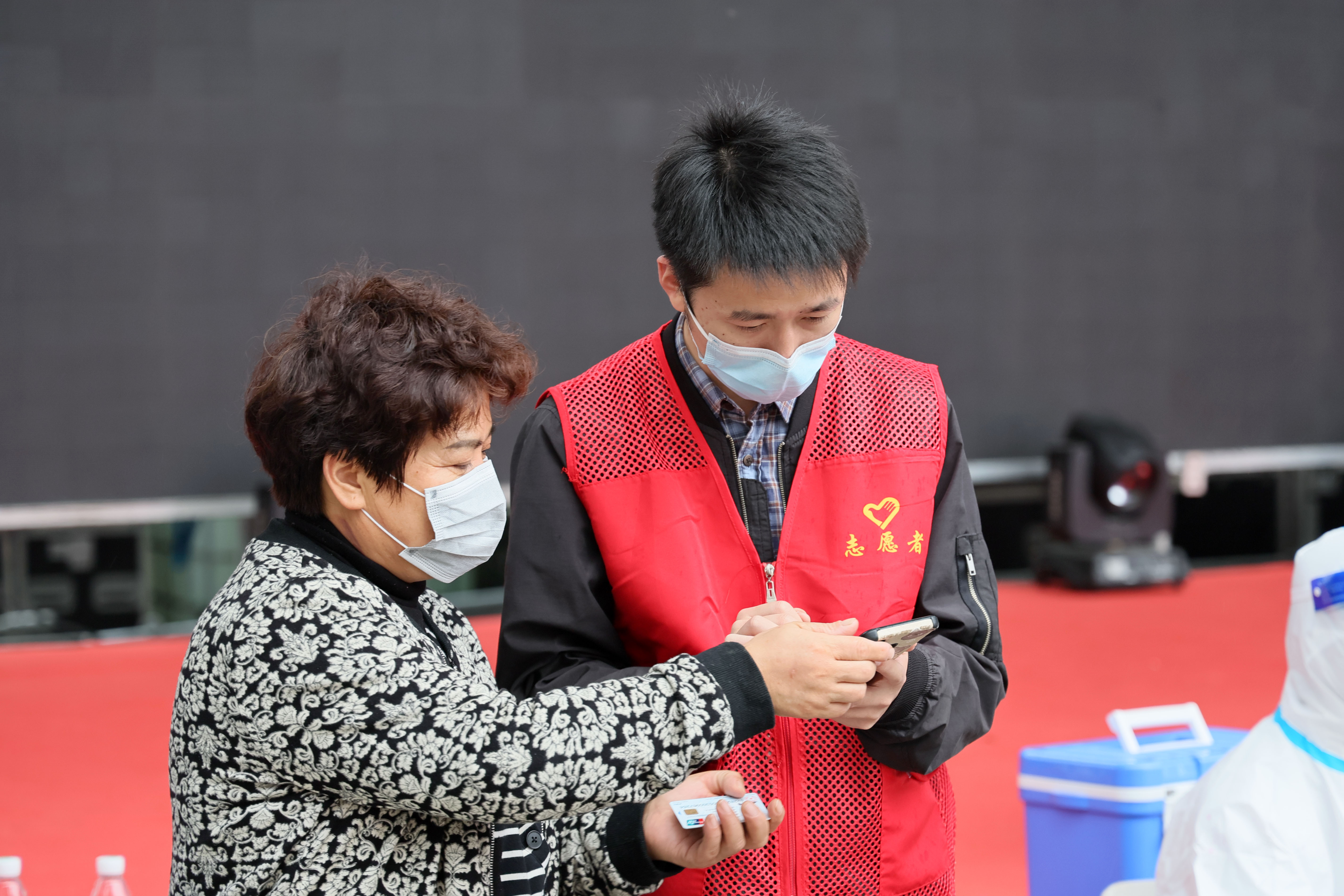 天空中下起了蒙蒙细雨,社区工作人员、志愿者、下沉社区的党员干部们毫不畏惧,雨中坚守,小区里志愿者用喇叭提示居民到指定核酸采样点采样,大家各司其职,相互配合,同心抗疫,科学高效推进核酸筛查。