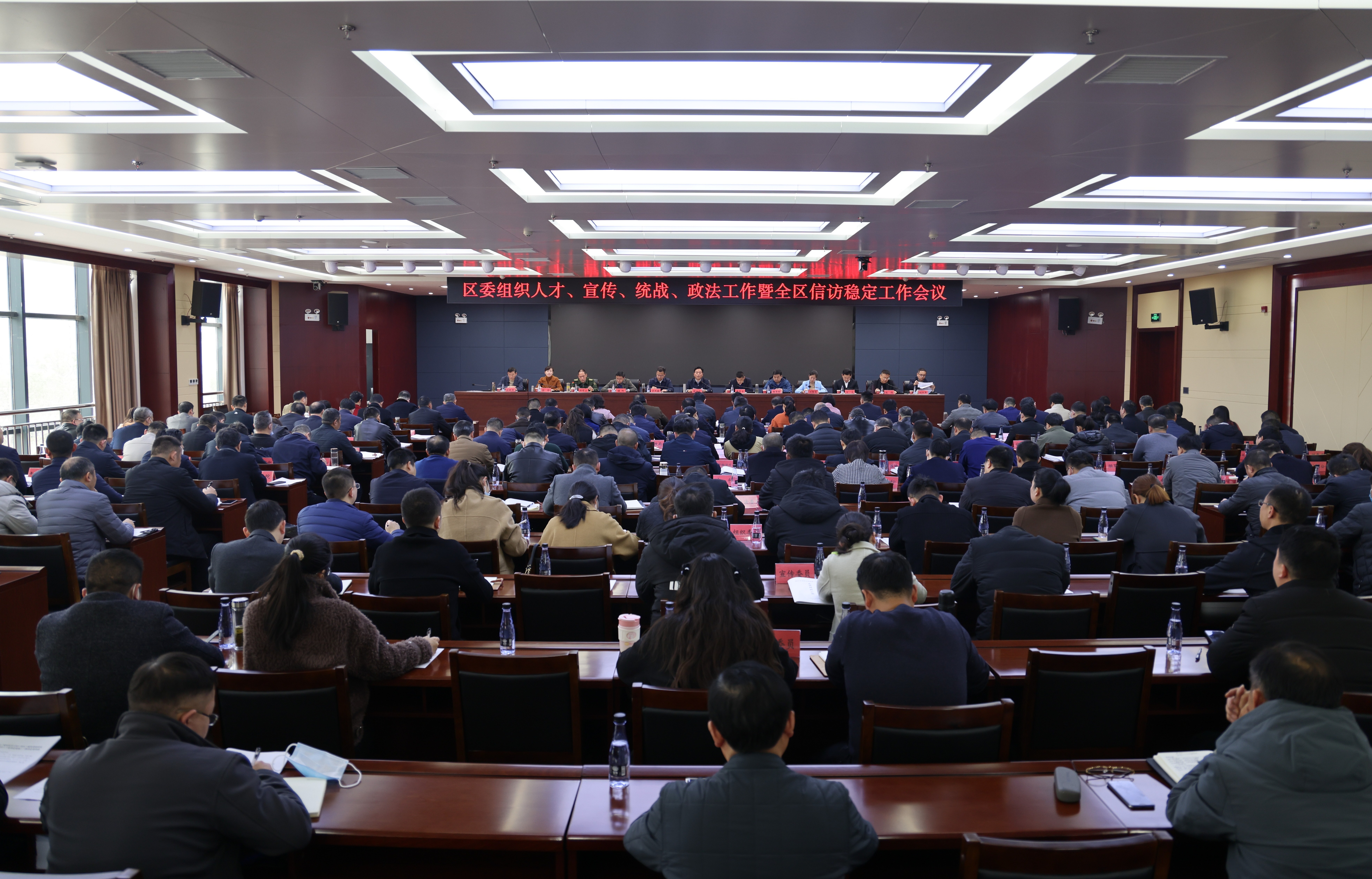 云上咸安报道 3月1日,区委组织人才、宣传、统战、政法工作暨全区信访稳定工作会议在区文体中心召开,会议深入学习贯彻党的二十大精神,全面贯彻落实中央、省委、市委有关会议精神,回顾总结2022年各条战线工作,分析研判当前形势,部署2023年重点任务,动员激励全区上下锚定目标、加压奋进、实干争先,以高质量党建引领高质量发展,以新安全格局保障新发展格局,为“四个首善之区”建设提供坚强保障。区委书记顾兴旺出席并讲话,区委副书记、区长李军平主持会议。