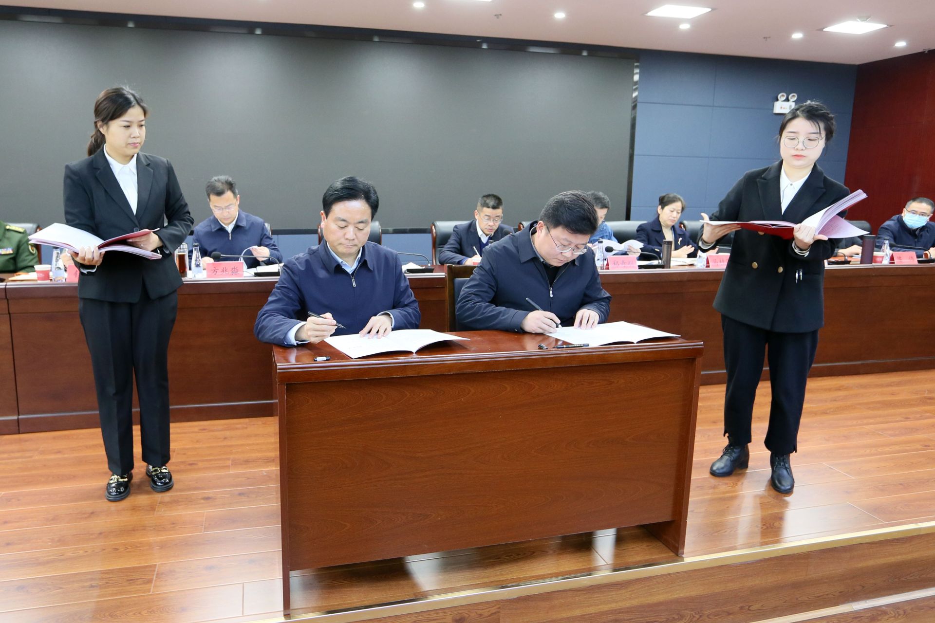 会上,顾兴旺与各乡镇场(街道)党(工)委书记签订 2023 年平安建设目标管理责任书。区委常委、区委办公室主任万龙宣读了《关于对全区信访工作示范乡镇(街道)和无访村(社区)予以表扬奖励的通报》。