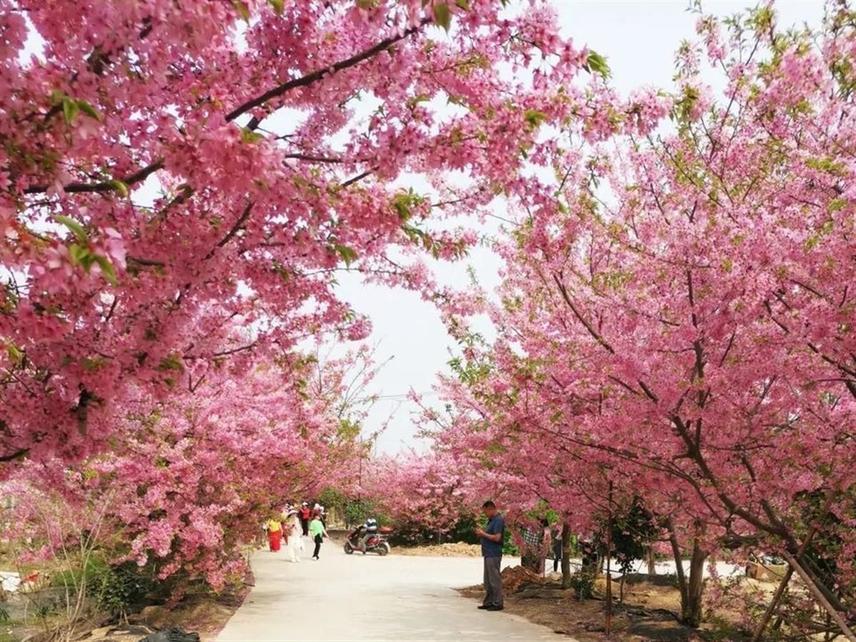 楚风樱海生态园位于新洲区仓埠街周铺村,该园拥有46个品种的早樱,中樱,晚樱2万棵。盛花期品种有红粉佳人、阳光樱、中国红、染井吉野、白妙樱、松月樱、绿樱、贵妃樱。