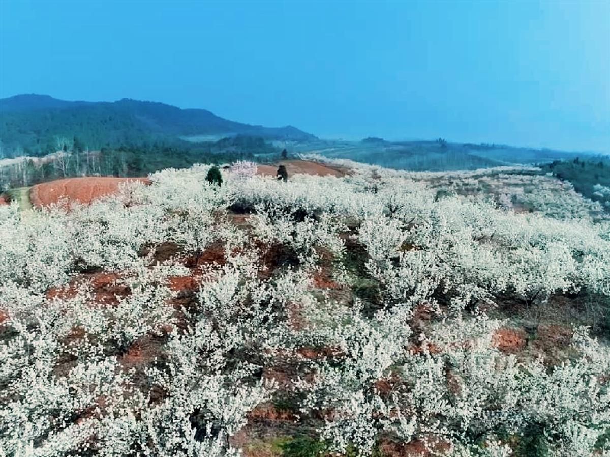 崇阳县龙泉山樱花谷有10万亩连片的野生樱花林,主要以华中樱为主。山上野樱花恣意绽放,如一个巨大的花冠,围绕在龙泉山周围,山下公路蜿蜒,山清水秀,风景怡人,游览其间,恍若穿行于画中。