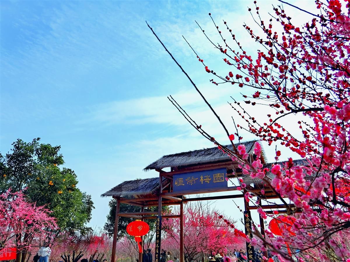 恒荣梅园占地650亩,园内种植了樱花465株,樱花盛开时,娇艳欲滴;园内还种植了古梅763株,其他梅花23000余株,共有宫粉、玉蝶、朱砂等165个品种;另有海棠、紫荆、碧桃、中华木绣球、映山红等各种苗木173个品种,共计59770株,四季有花可赏,风景秀丽,被誉为“荆州的后花园”。