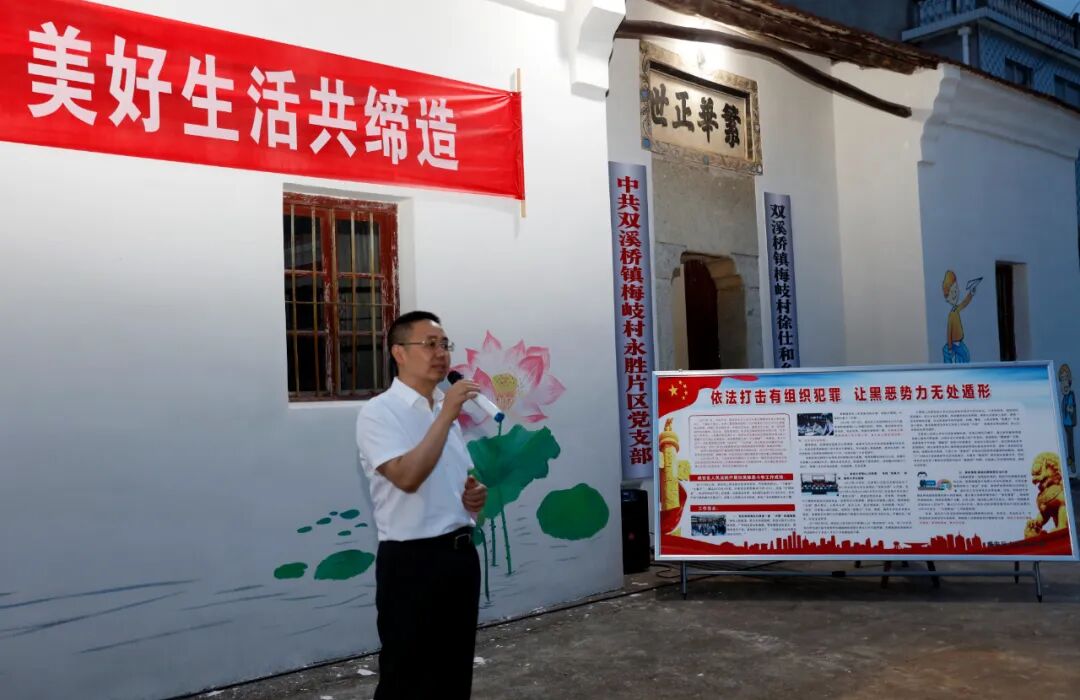 6月15日,当夜幕降临,咸安区双溪桥镇梅岐村徐仕和湾组的广场上、路灯下,20余户村民渐渐围拢过来,宁静的小村湾热闹了起来,一场与村民面对面、心贴心的“法治夜校进村湾,美好生活共缔造”活动拉开了帷幕。在双溪桥镇调研的咸宁中院党组书记、院长李文锋与当地村民坐在一起,共同唠家常、说法治、话治理。