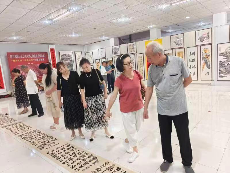 活动现场,老干部和附近居民三五成群地赶来参观,他们驻足书画前认真品鉴,或热情讨论,或合影留念,或兴致勃勃地听取区老年书画家协会的老书画家们对书画知识的生动讲解,了解书画作品的背景故事和蕴含的文化内涵,展览厅里欢声笑语一片。大家在一幅幅笔酣墨饱、气韵生动的作品中体会家乡的风情韵味,感受优秀传统文化的魅力。