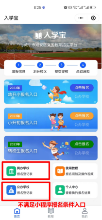 符合小程序报名条件者,选择“幼升小”、“小升初”、“转校生”入口,填写报名儿童身份信息,(其中“幼升小”入口,报名年龄限制2017年8月31日前出生的儿童;“小升初”入口,需填写真实的毕业小学,部分学校仅支持本校小学毕业生报名;“转校生”入口,部分学校不接收转校生报名,请了解详细政策后填报。)