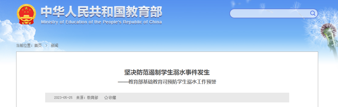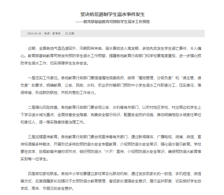 教育部今年5月就下发了预防学生溺水工作预警坚决防范遏制学生溺水事件发生