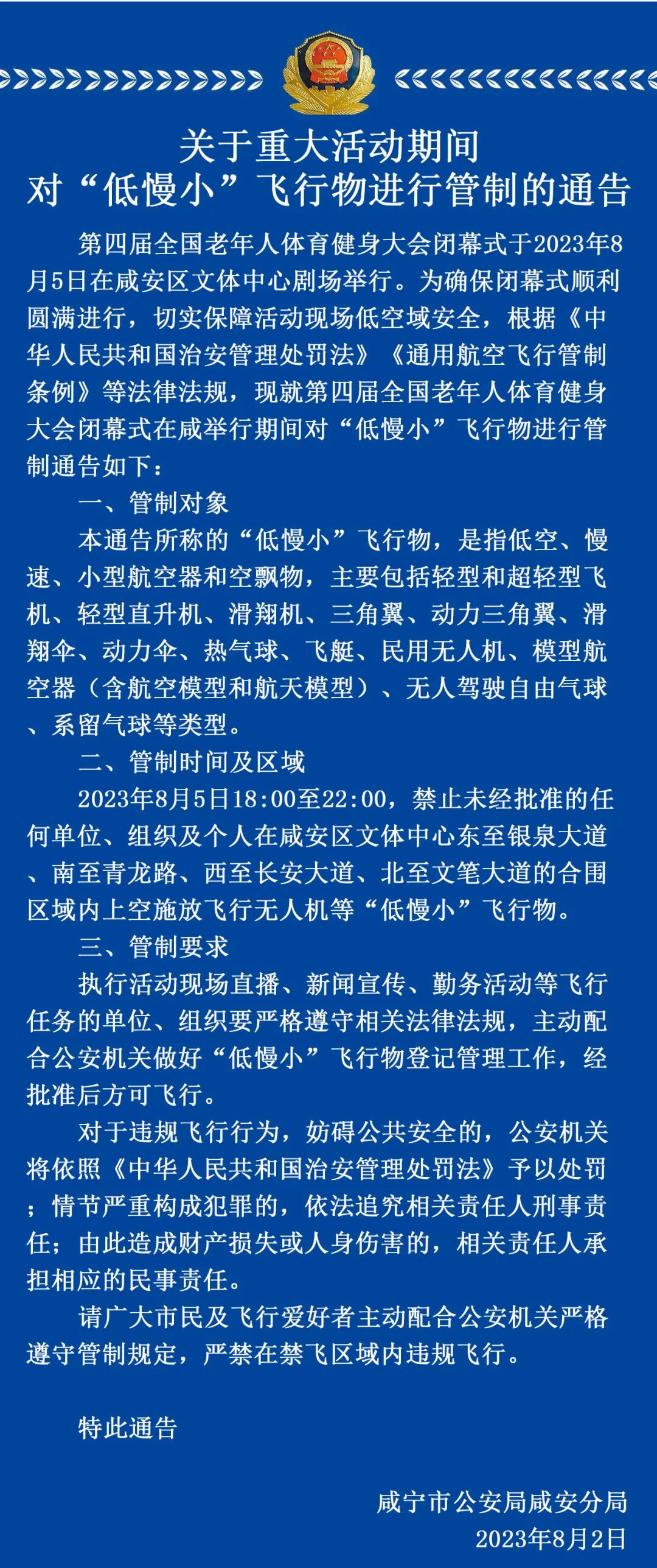 关于重大活动期间对“低慢小”飞行物进行管制的通告