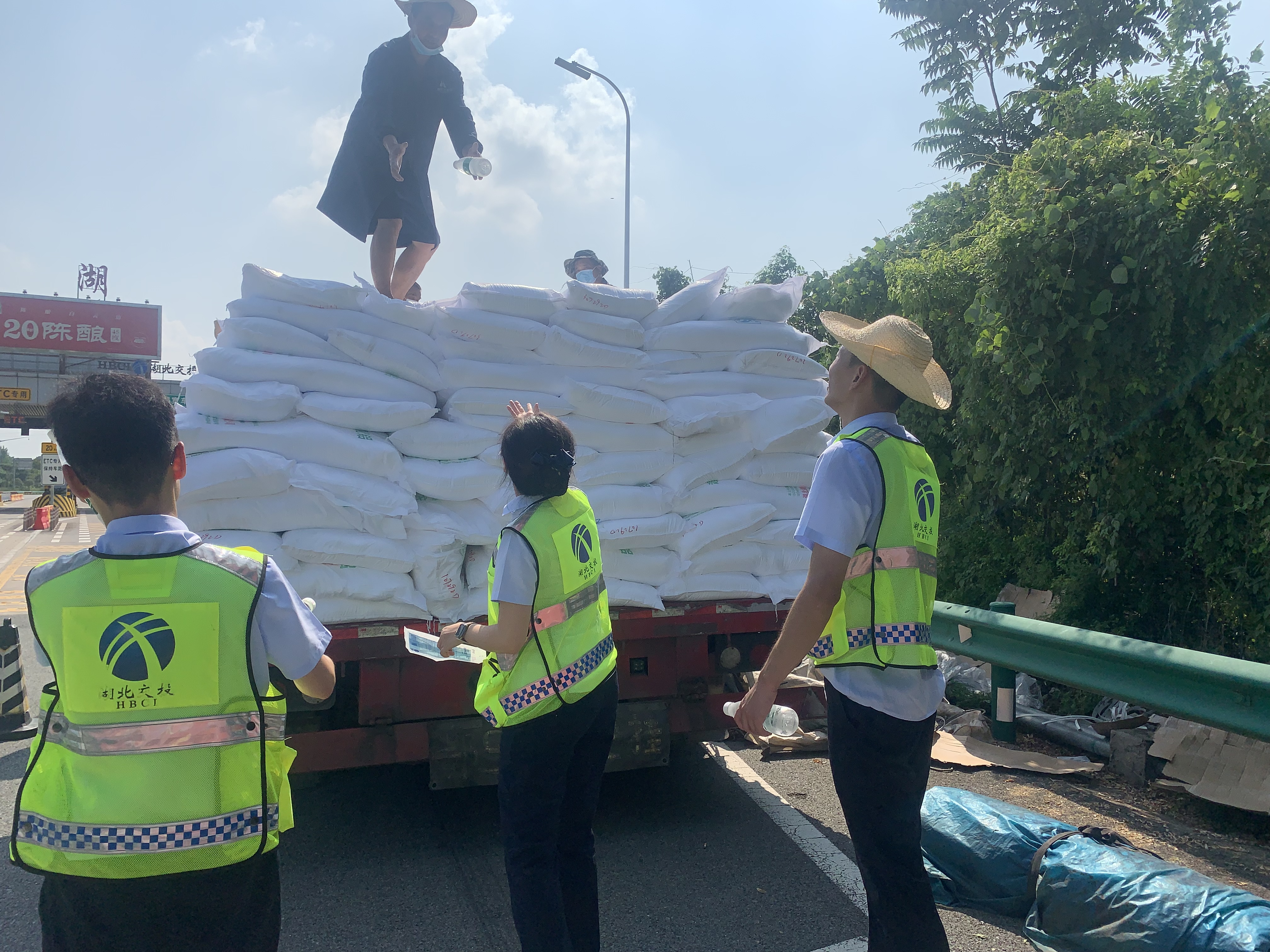 湖北交投京珠运营公司向阳湖管理所党员、青年志愿者们以及施救大队人员迅速出动赶赴现场。他们一边提醒过往车辆安全通行,一边和施救人员轮番上阵,对倾覆货物重新装车。烈日下,现场气温高达38℃,志愿者们不顾汗流浃背,经过三小时的通力合作,全部货物被重新装车,大货车顺利驶离高速。