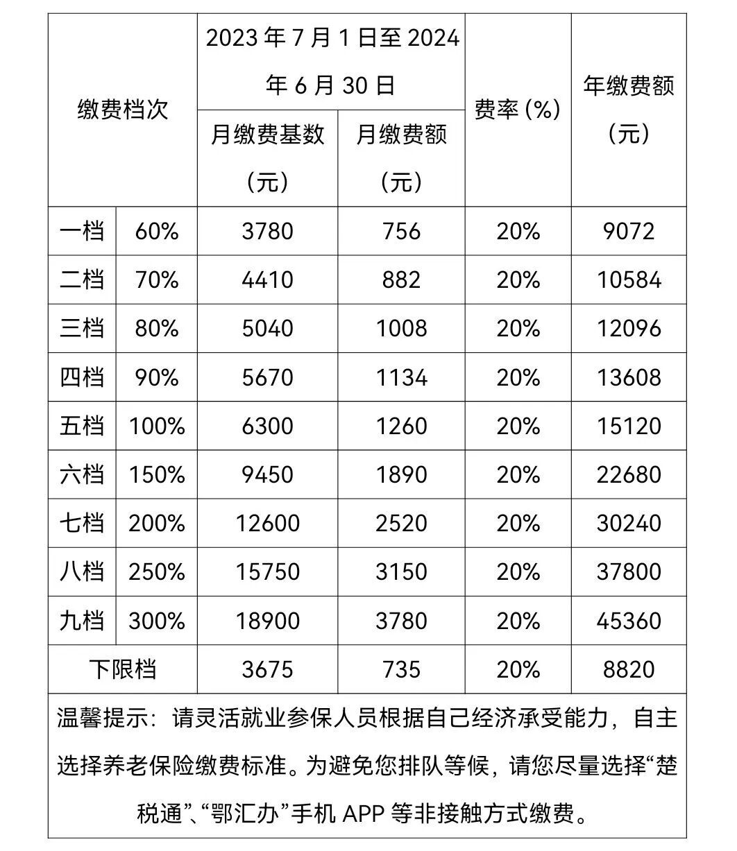 原已在咸宁市咸安区参保缴费人员,缴纳2023年7月至2024年6月期间基本养老保险的,无需打印核定单,可直接选择“楚税通”、“鄂汇办”手机APP完成缴费。