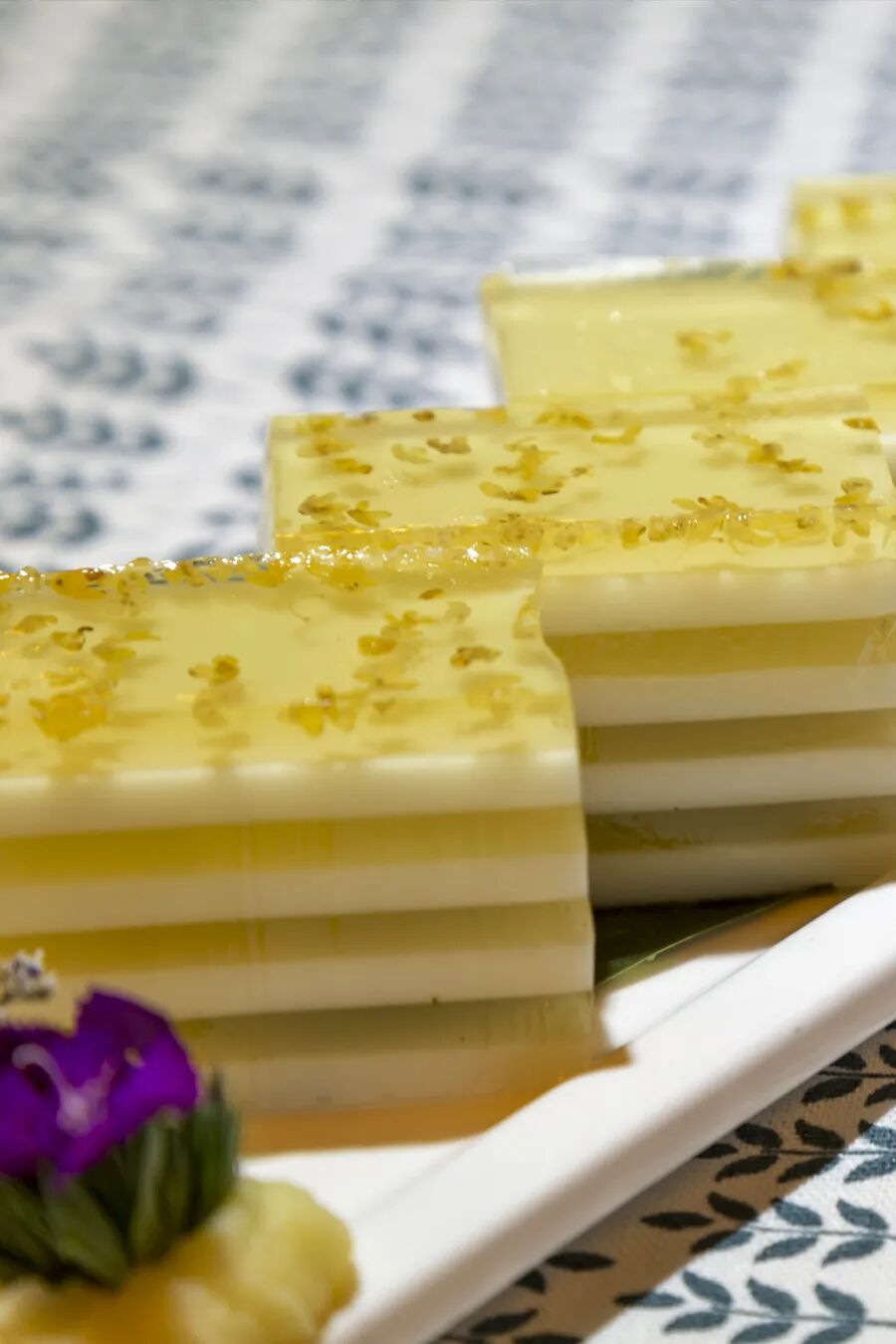 从古至今,这份秋日的香甜人们从未只满足于赏其美、闻其香,入茶、入酒之外,还要制成美食,如桂花糕、桂花糖、桂花糯米糖藕……