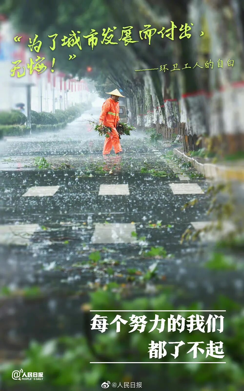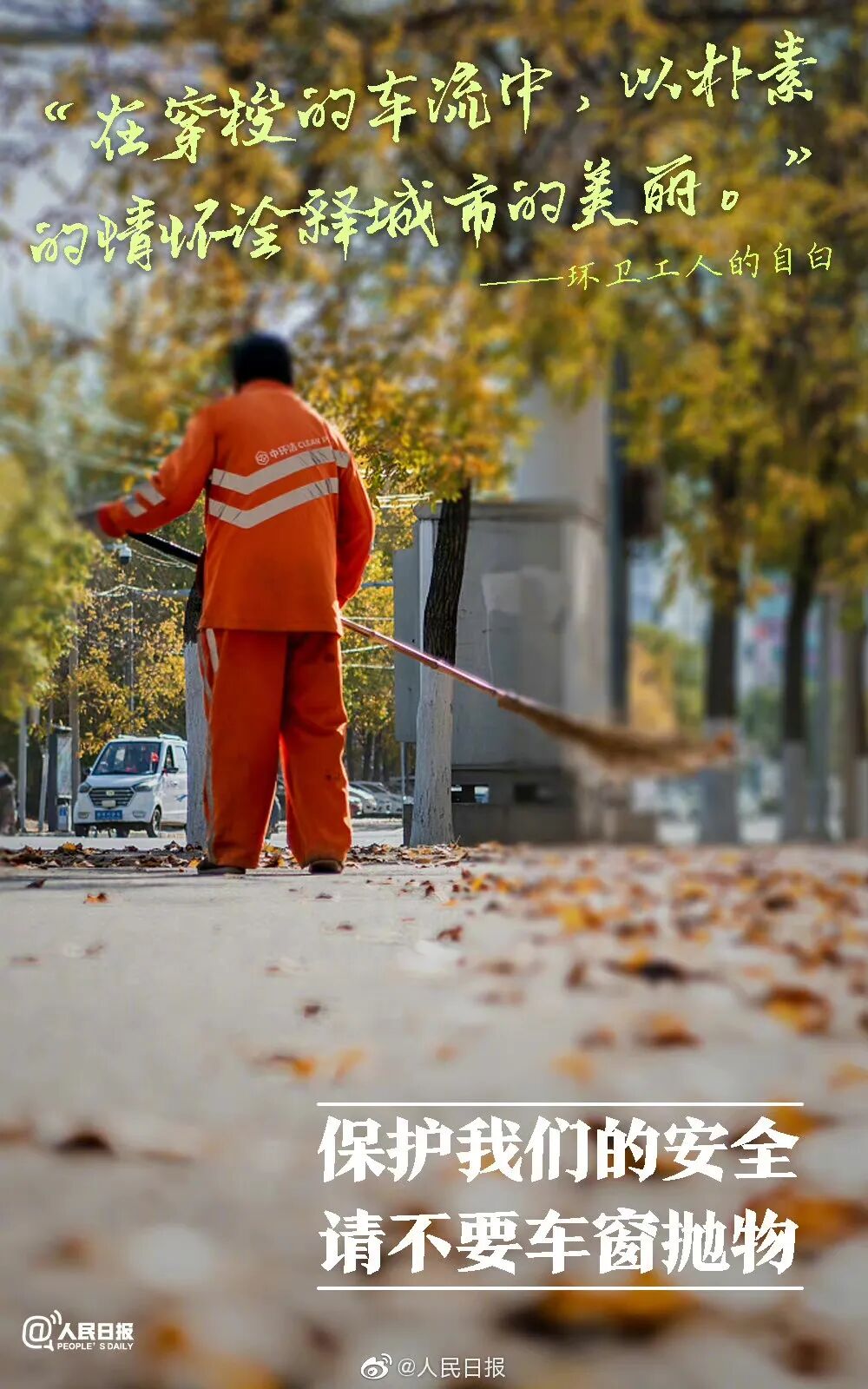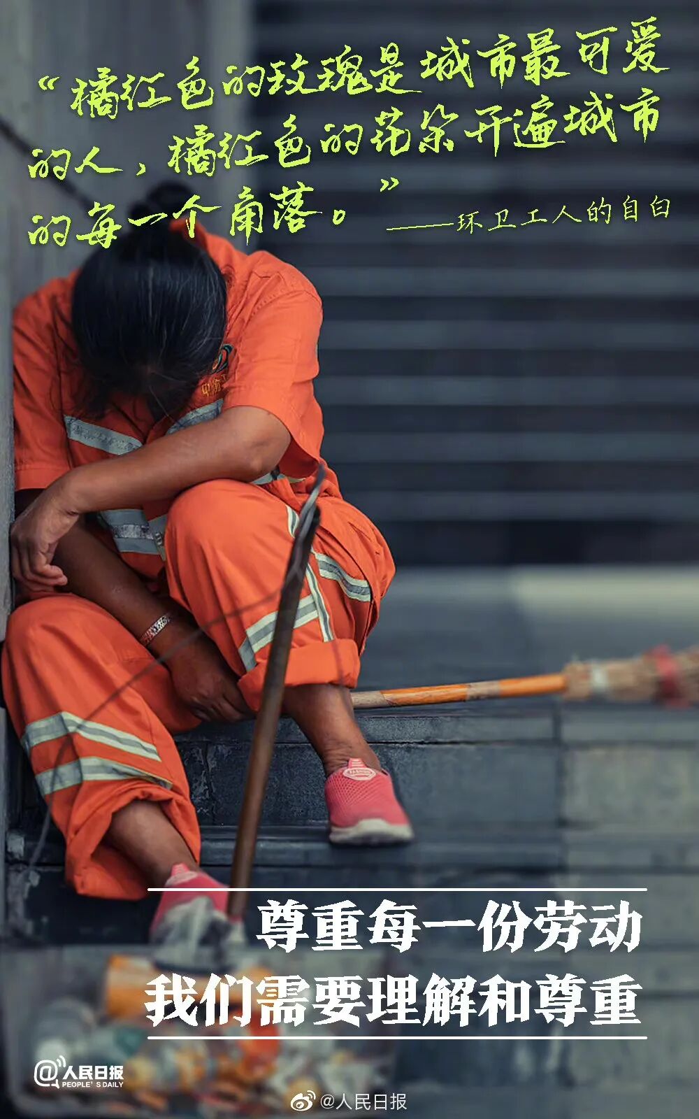 他们冬顶严寒,夏冒酷暑年复一年,日复一日呵护了万千马路,他们用自己的辛劳换来整洁的城市,他们值得被关注! 10月26日是环卫工人节,致敬既平凡又伟大的劳动者,请给予他们理解与尊重! (来源:人民日报微博 中国建设报 文明怀仁 编辑:董盈)