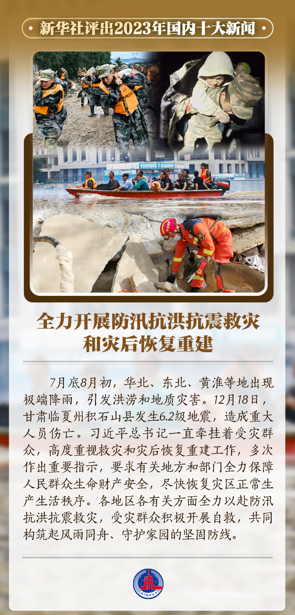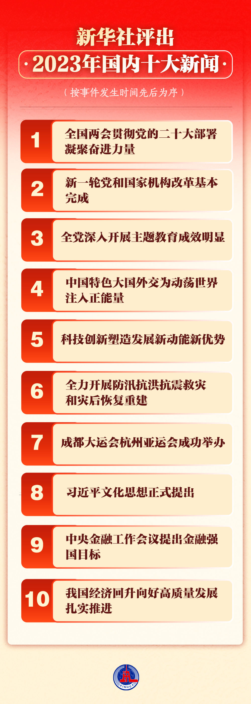 新华社北京12月29日电 新华社评出2023年国内十大新闻(按事件发生时间先后为序)