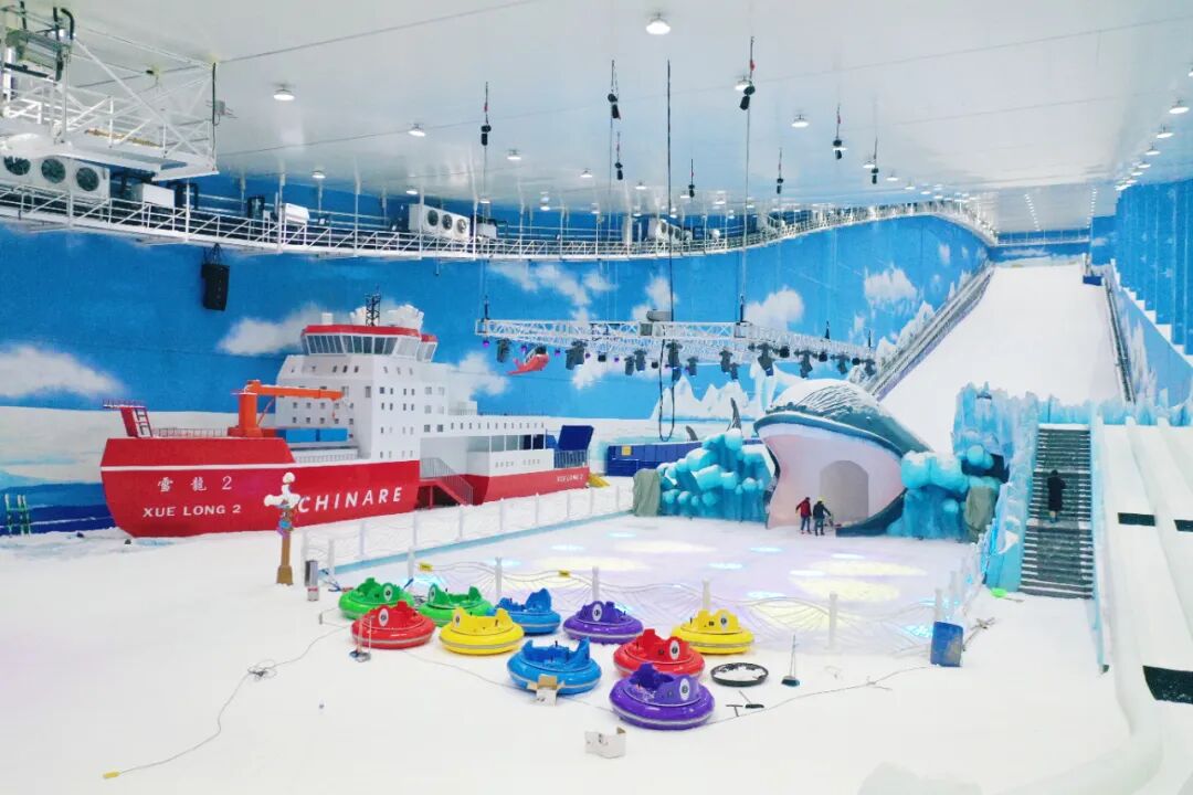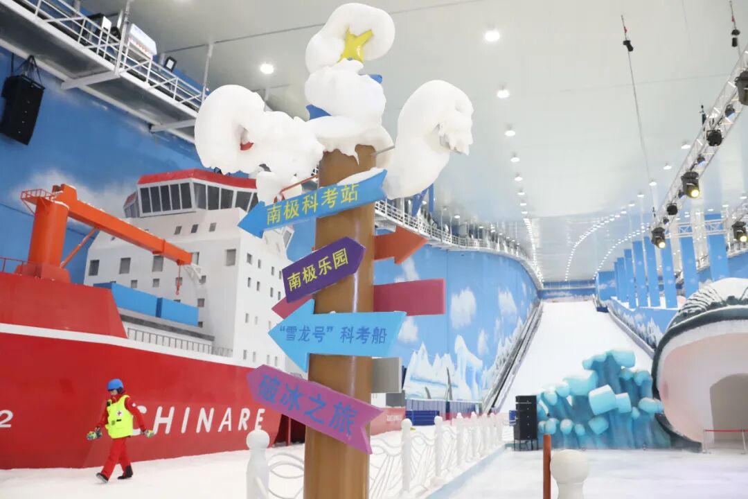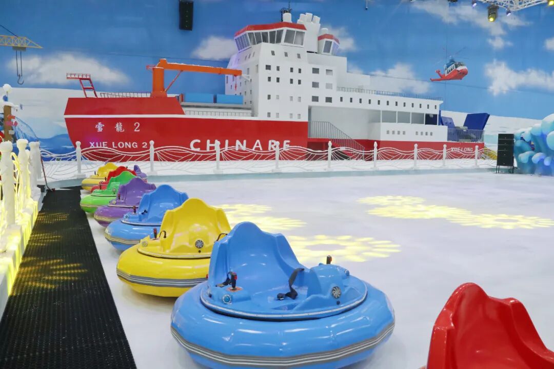 在南站科考站、雪龙2号等标志性建筑拍照打卡,进入冰隧道看极光秀,与小伙伴一起开着碰碰车在冰上旋转、撞击……