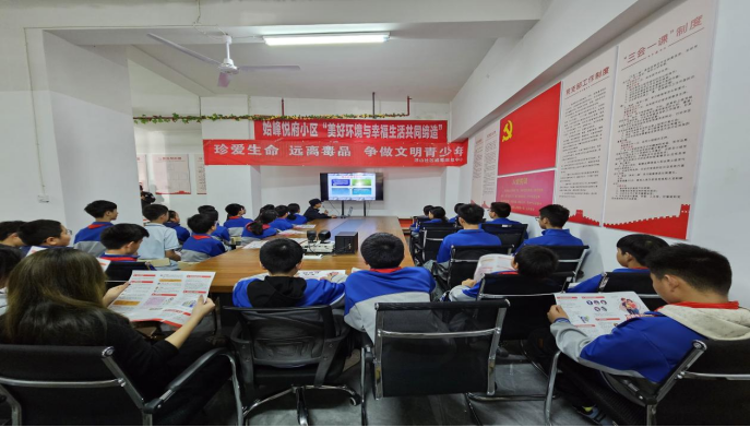 云上咸安报道 为进一步加大禁毒宣传教育力度,增强青少年的禁毒防毒意识,4月15日,浮山街道社区戒毒康复中心联合金桂社区、浮山派出所、咸宁高新实验外国语学校,在金桂社区始峰悦府红色驿站开展“禁毒童行,青春无毒”主题活动。