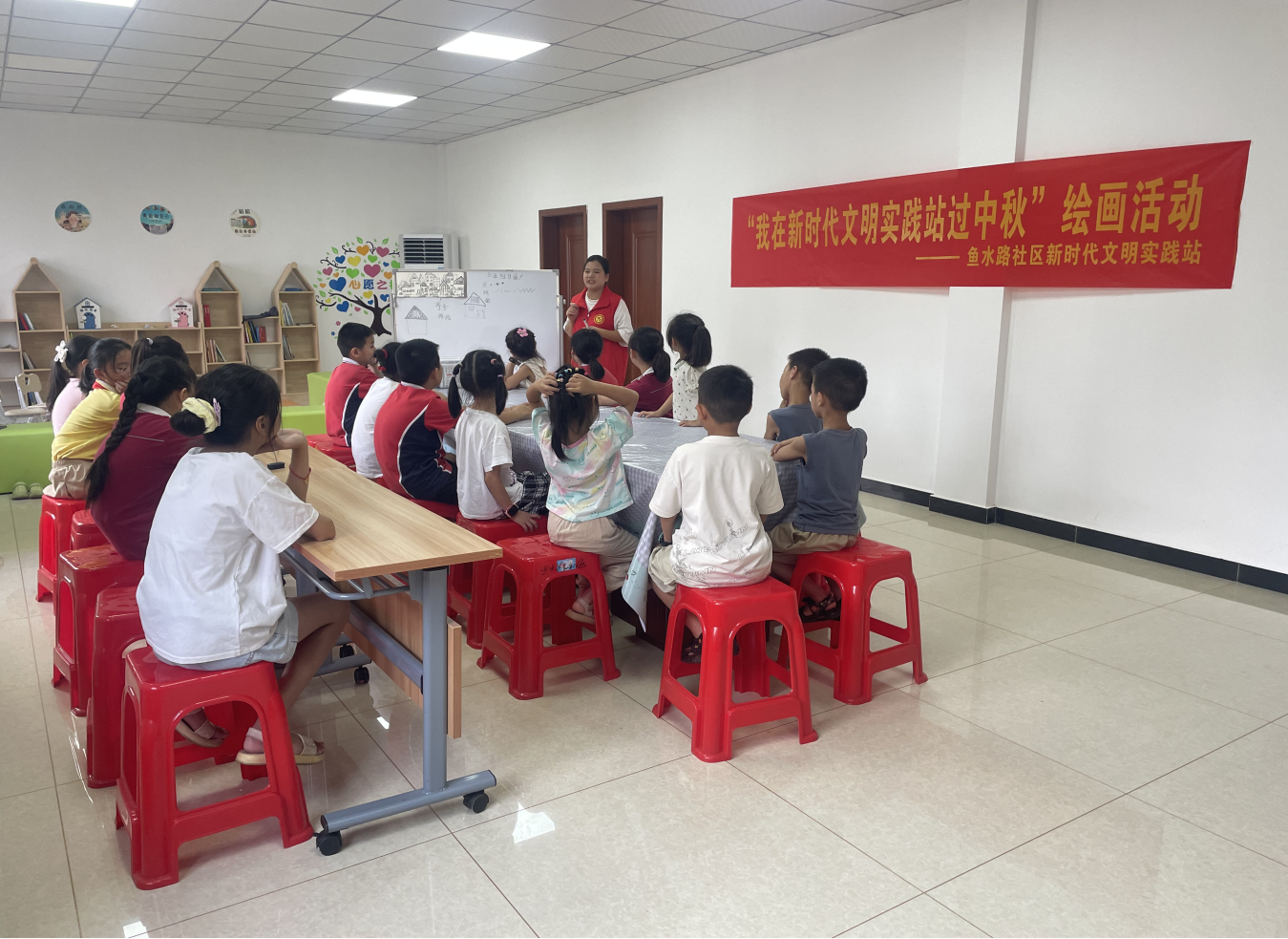 为培养孩子们的创新意识和创意灵感,9月10日,鱼水路社区联合小魔方画室在新时代文明实践站开展了一场中秋绘画活动。
