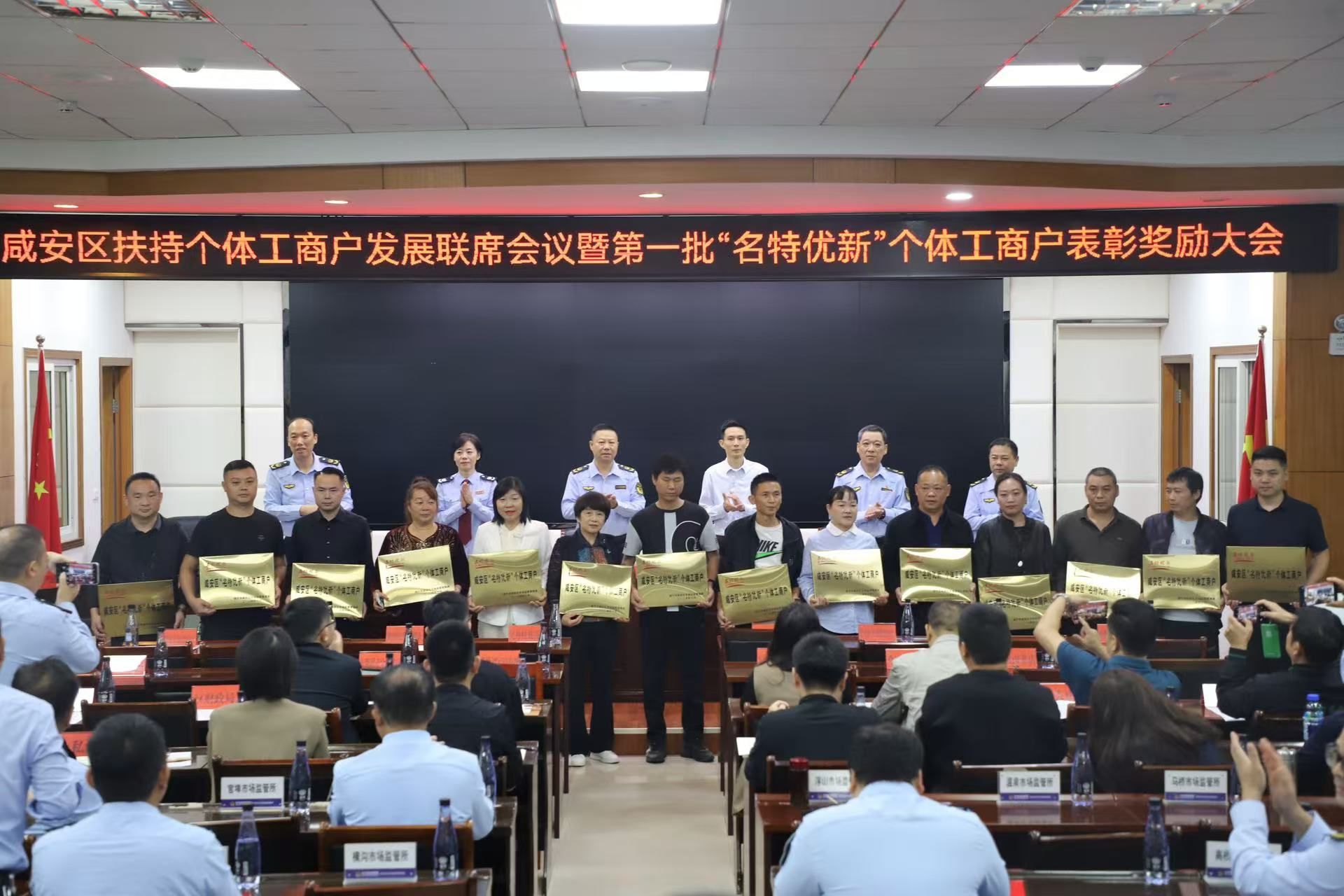 云上咸安报道 10月15日上午,咸安区扶持个体工商户发展联席会议暨第一批“名优特新”个体工商户表彰奖励大会在区市场监督管理局召开。
