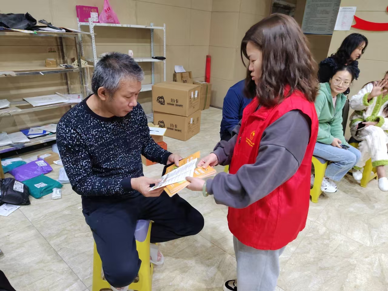 一大早,驻村干部小黄与村干部们就分组开展行动。入户上门为独居老人以及行动不便的村民提供保险代缴服务,耐心地为他们讲解冬季用火用电的安全知识,提醒他们冬天烤火、熏肉、用电热毯时的注意事项,做到“人走火熄、人走电断”,帮助老人们提高安全意识,确保他们的居家安全。老人们听得认真,也学得仔细。此外,干部们还与老人们围坐一圈、相互交谈,倾听他们的心声与需求。从往昔的岁月谈到如今的生活变化,老人们的话语中透露出对生活的热爱与对未来的期盼。