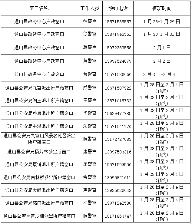 2025年春节即将来临,为方便春节期间外出务工、经商、求学等返乡群众办理身份证、驾驶证、出入境等公安业务,市民之家公安窗口全面落实春节期间值班制度。户政、交警窗口值班时间为2025年1月28日-2月4日上午9时至11时;出入境窗口值班时间为2025年1月28日、2月1日-2月4日上午9时至11时,其他时间可电话咨询业务。请需要办理公安业务的居民拨打窗口电话,提前准备所需材料。