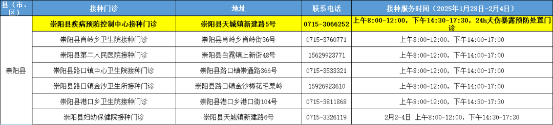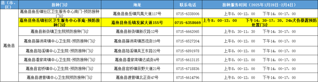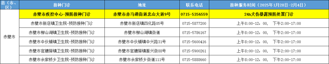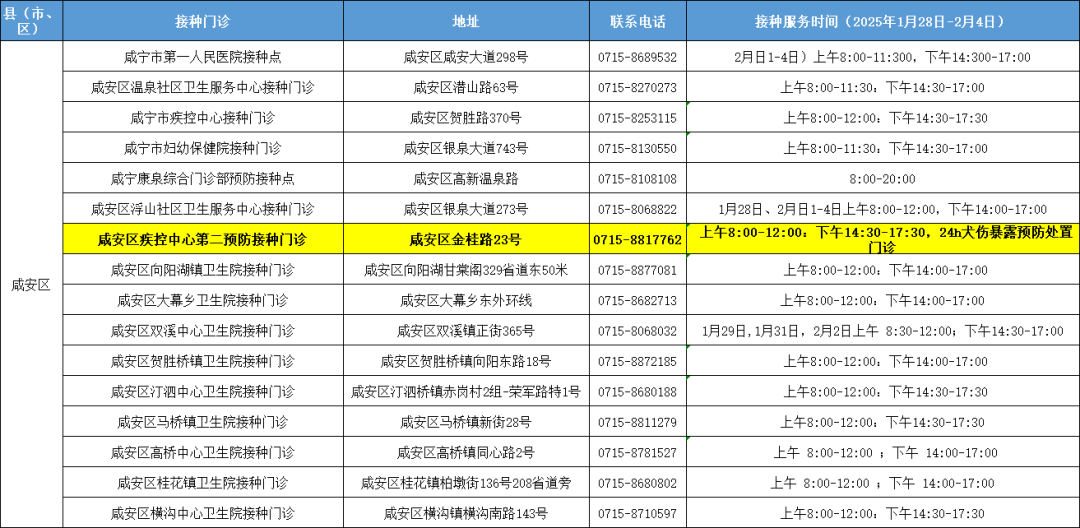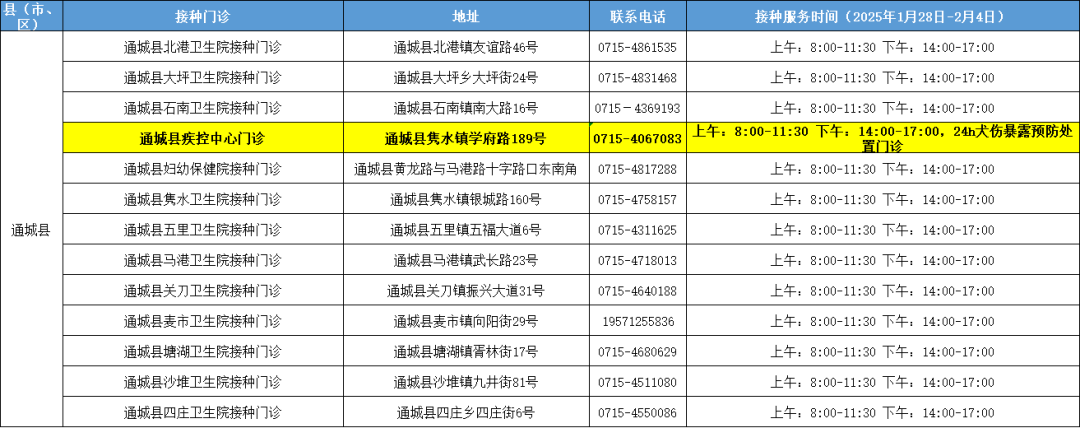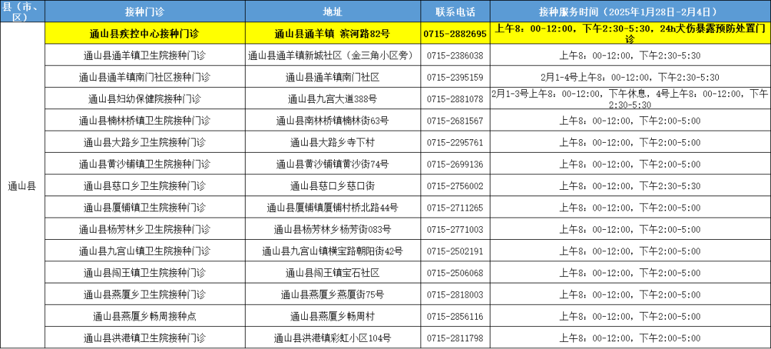 标黄的接种门诊为各县市区24h犬伤暴露预防处置门诊↓↓