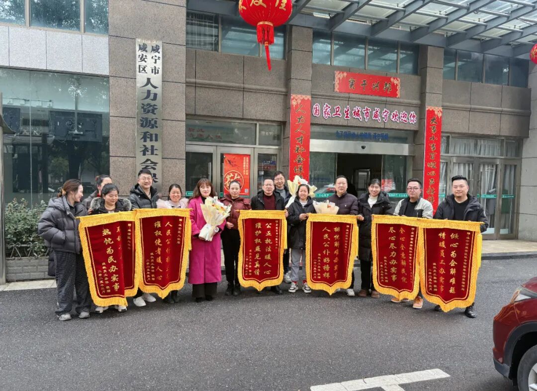 云上咸安报道 3月6日,咸安区人社局一楼大厅掌声雷动,8名企业职工代表手持“维护权益见真情 公正执法暖人心”等6面锦旗,向工作人员表示感谢。这一暖心场景,见证了区人社局社保稽核部门历时二十余天,成功化解企业社保纠纷的攻坚历程。