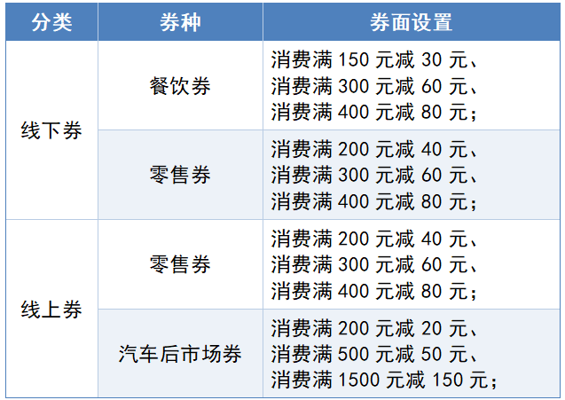 本次消费券将分三轮车投放,15天一轮次,2天报名、2天摇号、1天公示、10天核销。首轮发放时间安排如下: