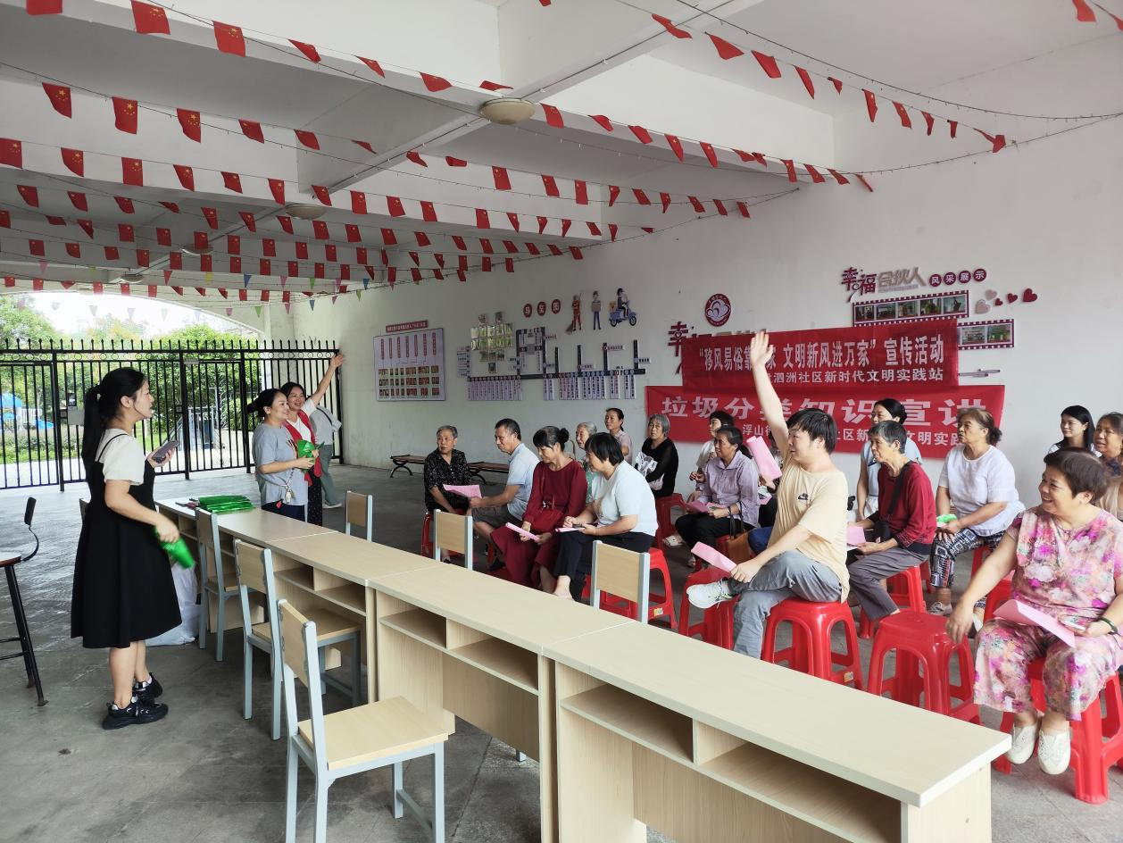 “请问废旧电池属于什么垃圾?”“厨余垃圾应该投放到哪种颜色的垃圾桶?”活动开始,知识问答环节就迅速点燃了现场气氛。社区工作人员刚抛出问题,居民们便纷纷举手抢答,回答正确的居民获得了印有垃圾分类标识的环保袋、垃圾桶等实用礼品;对于答错的居民,工作人员也及时给予耐心讲解和纠正,让大家在互动中真正掌握分类要点。