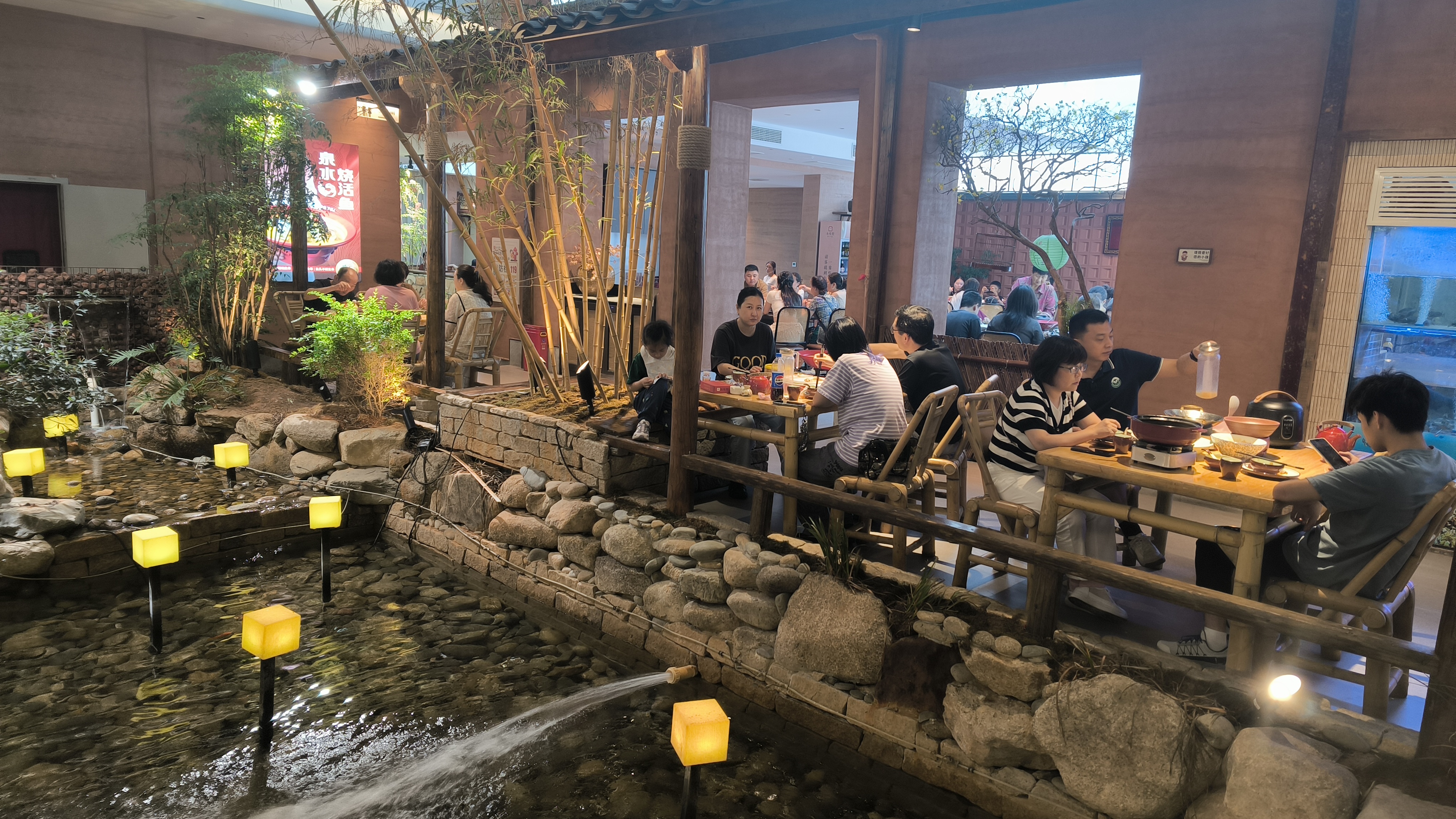 同样人气火爆的还有永安府(龙潭店),不到傍晚六点,店内的包房就已全部被预订一空,大厅里的散台也座无虚席,还有不少游客拿着号码牌在休息区耐心等待翻台。用餐结束后,饶女士一家人被一角传来的悠扬歌声吸引,留住了他们的脚步。原来,餐厅特意邀请了本地歌手驻唱,演唱的多是充满咸宁地域特色的民谣。