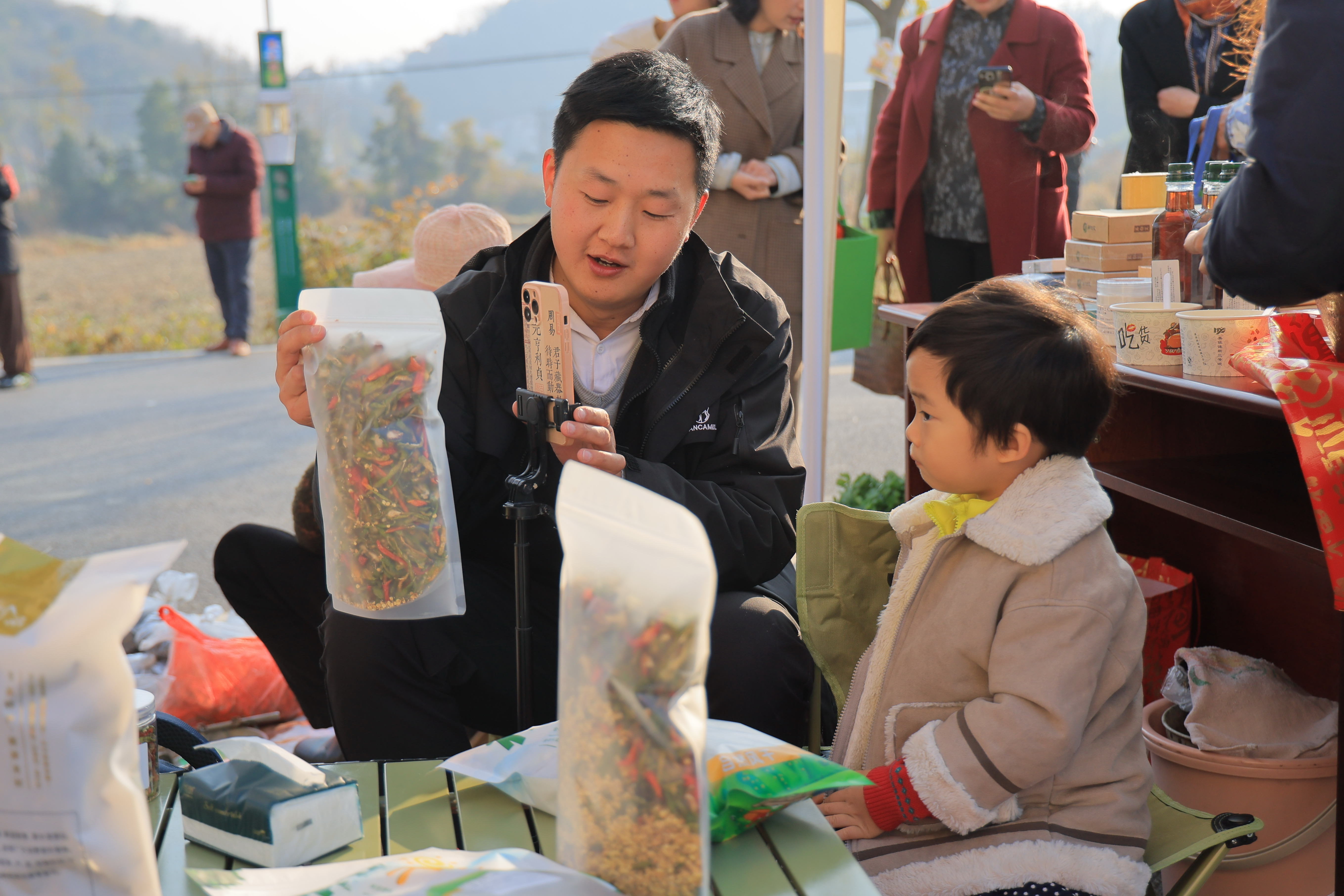 作为活动的“主角”,“石桥集市”的20个特色摊位前挤满了人。散养的鸡鸭鹅、鲜嫩的乡猪肉、饱满的再生稻、香醇的菜籽油、手工制作的苕粉……琳琅满目的原生态农副产品,让游客们争相选购。“这土鸡看着就精神,我买两只回去炖汤!”“再生稻煮的饭香得很,多囤点!”摊主们热情地招呼着顾客,忙得不亦乐乎,村民的腰包也渐渐鼓了起来。