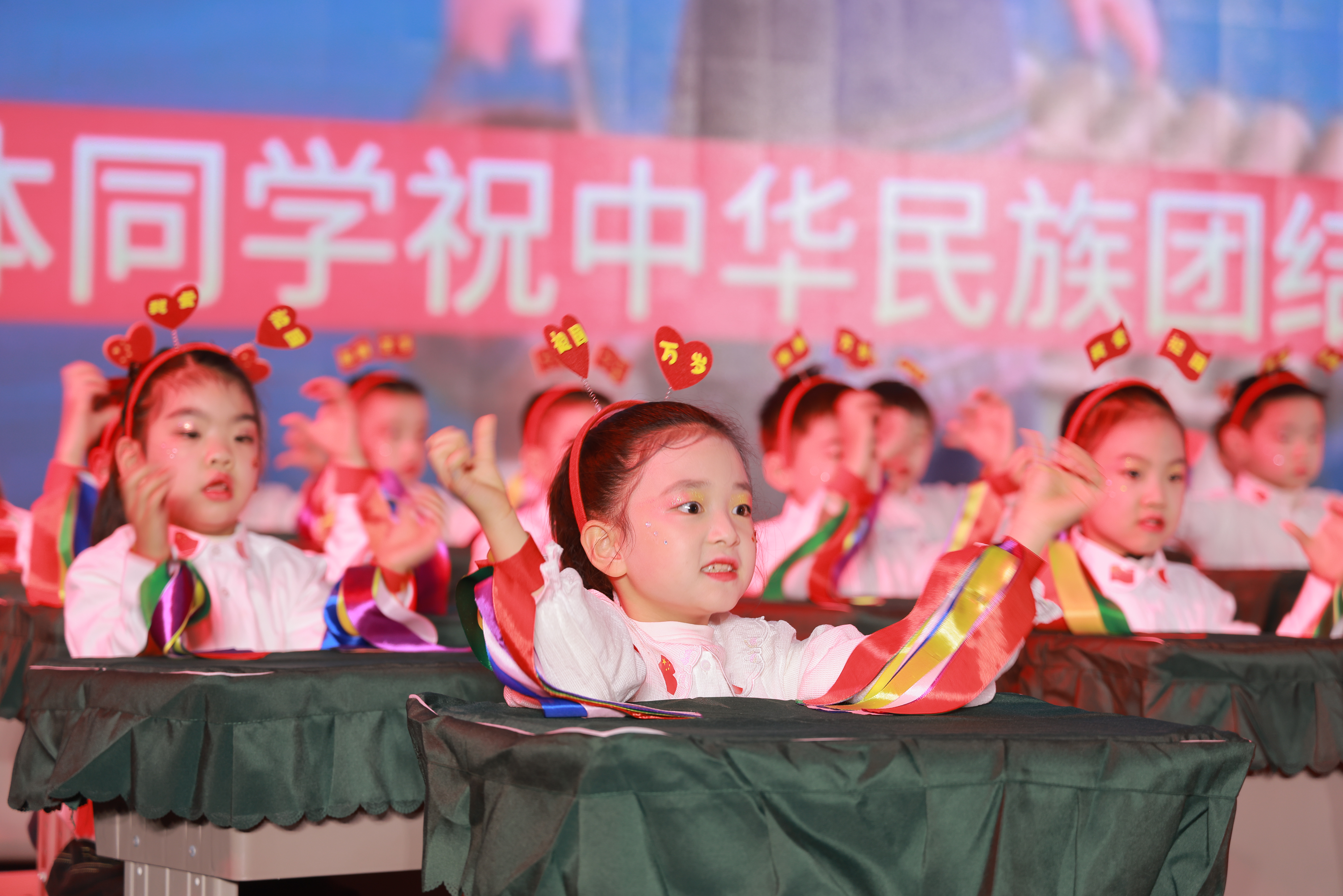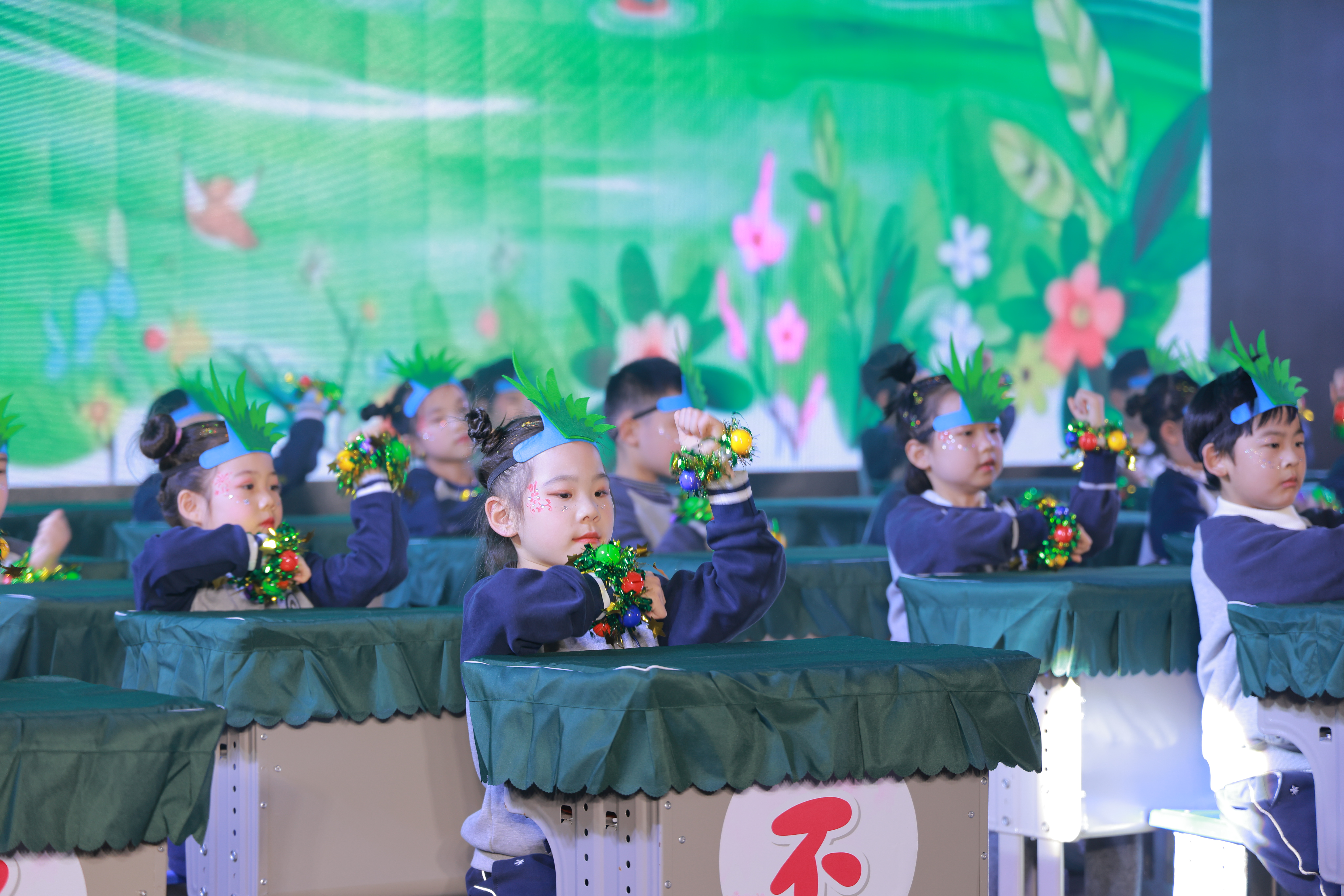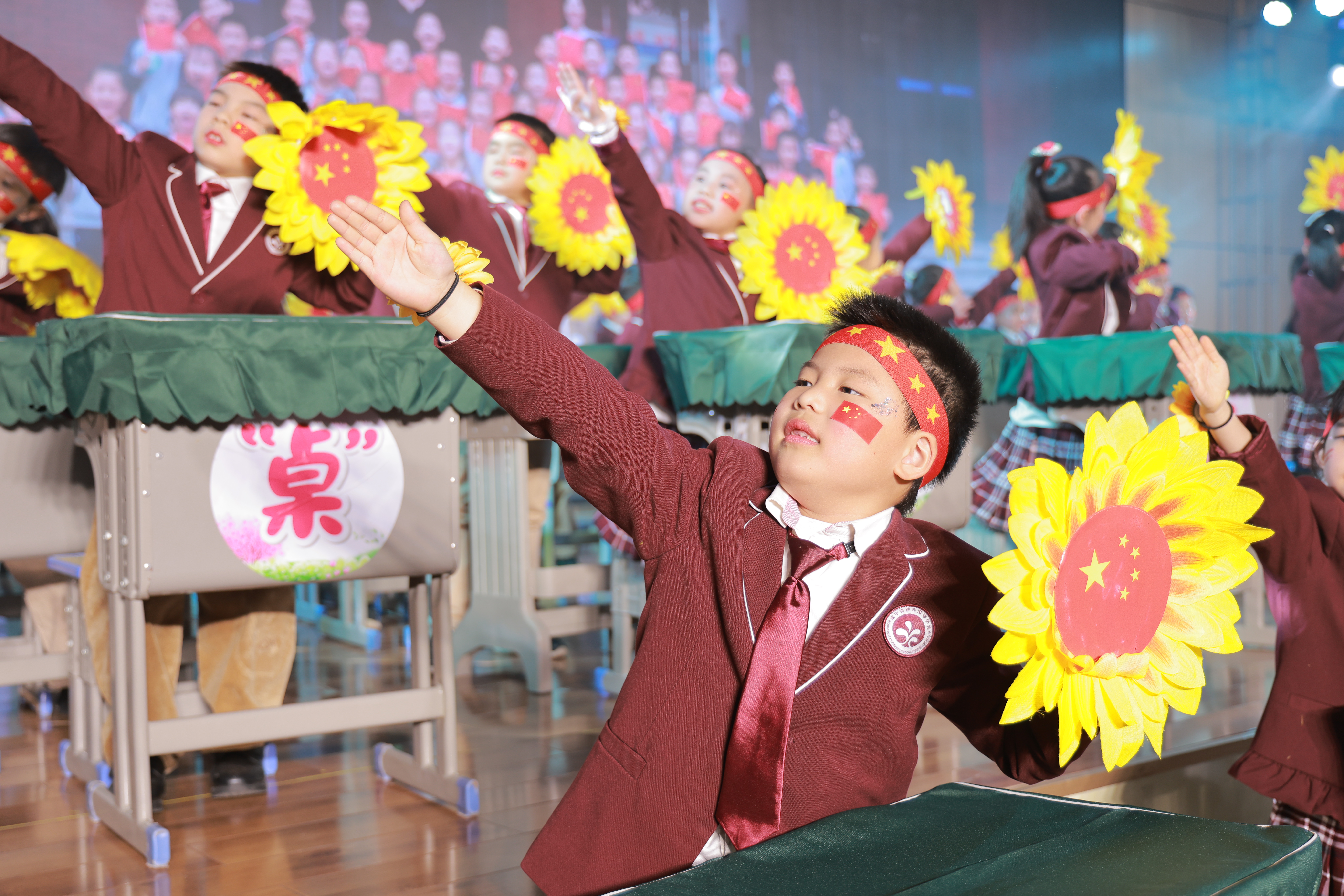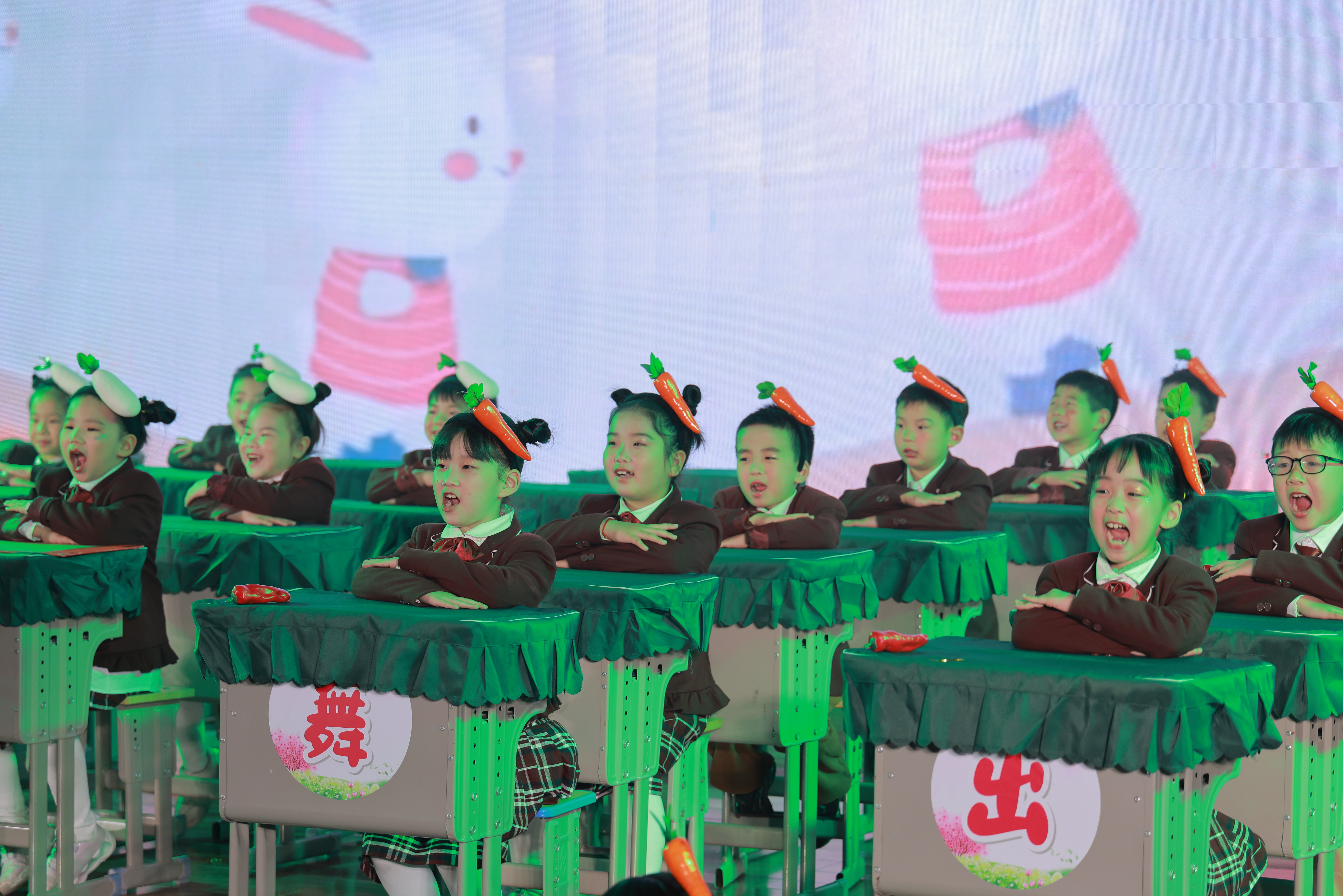 比赛现场,各班依次登场,小小身躯端坐于课桌前,随着《祖国在我心》《阳光男孩,阳光女孩》《听我说》等一首首融合了爱国情怀、童年趣味与成长主题的音乐响起,孩子们用整齐的动作、灿烂的笑容,或挥动手臂,或击打桌面,或变换手势。他们以课桌为舞台,以文具为道具,随着音乐律动,演绎出一个个充满童趣与朝气的节目,展现了出色的节奏感和集体协作精神。