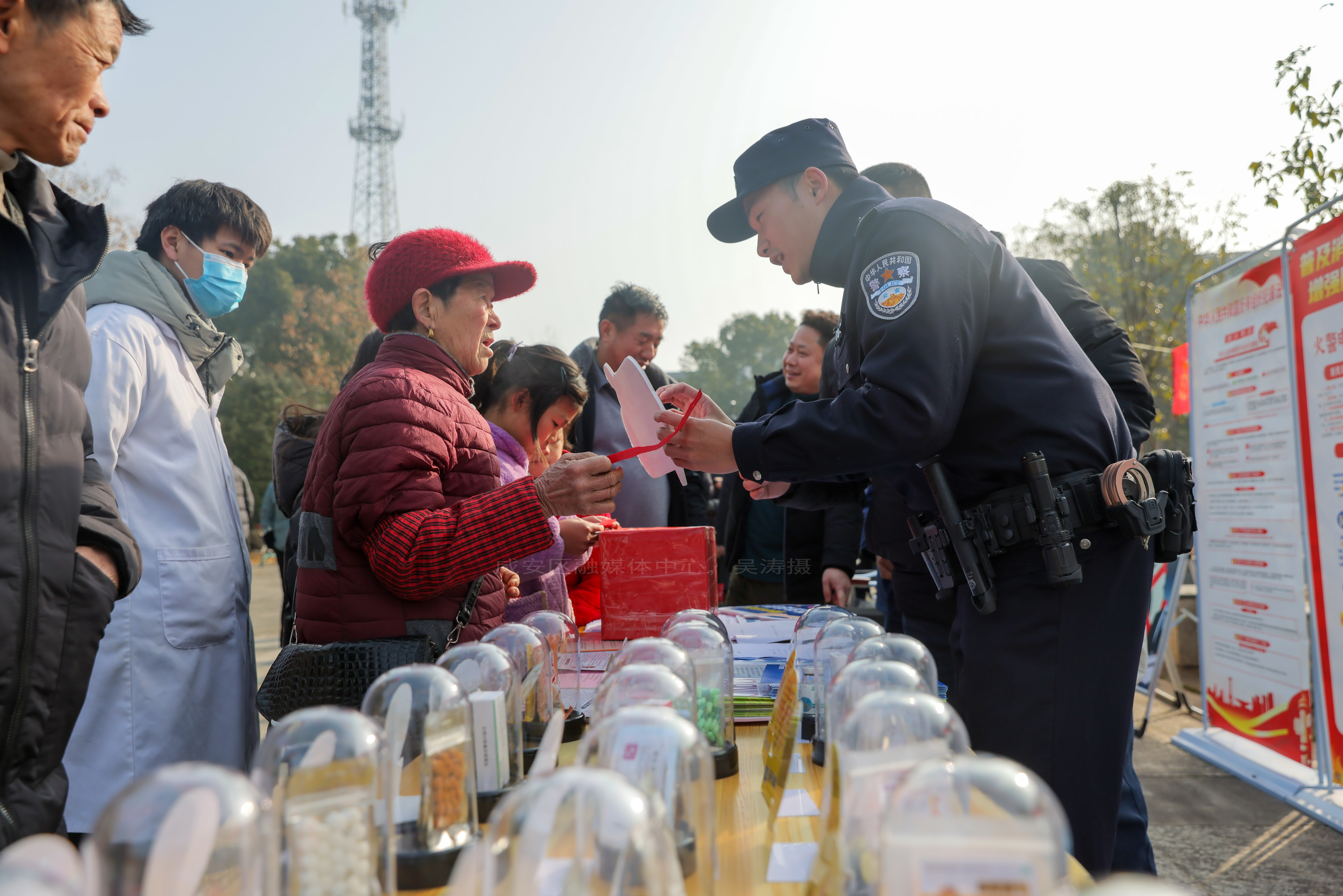 法治宣讲区同样人气高涨。区检察院设立未成年人保护、预防电信诈骗咨询点,专业解答群众疑问;高桥镇派出所通过案例讲解、抽奖问答等方式普及防范非法集资、禁毒知识。法律咨询台前,工作人员耐心为群众提供法律服务,增强法治观念。