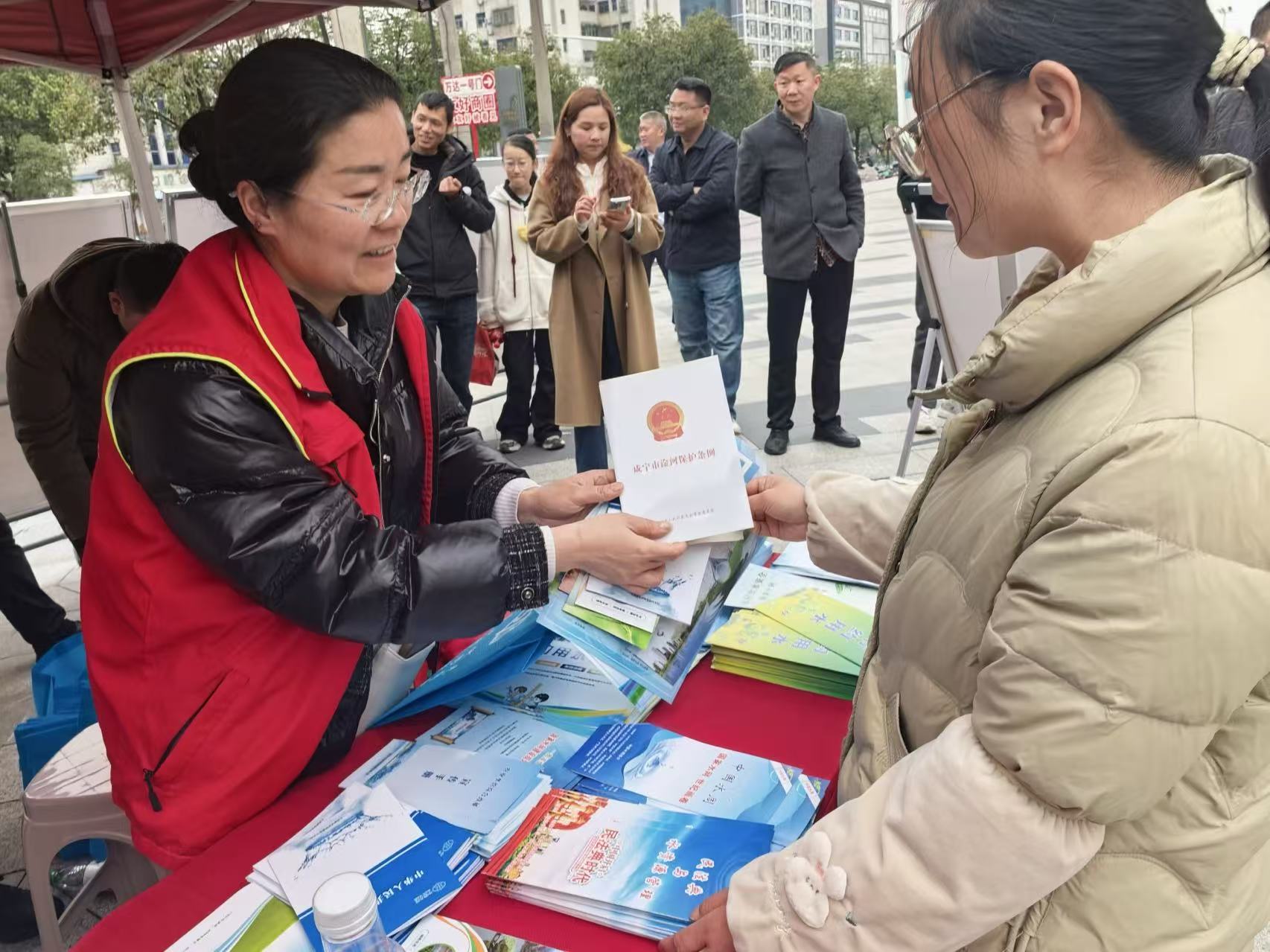 区水利和湖泊局的志愿者们积极行动,向现场群众发出“保护河湖・节约用水”的倡议。希望广大群众厚植节水护水意识,主动学习河湖保护及节水相关法律法规;从日常生活、生产工作的细微之处做起,将节水护水融入衣食住行,积极参与河湖管护、清淤保洁等志愿行动;主动监督身边的涉水不文明行为,善用“咸水通”小程序举报涉水问题,争做河湖保护的坚定参与者、积极践行者、主动监督者。