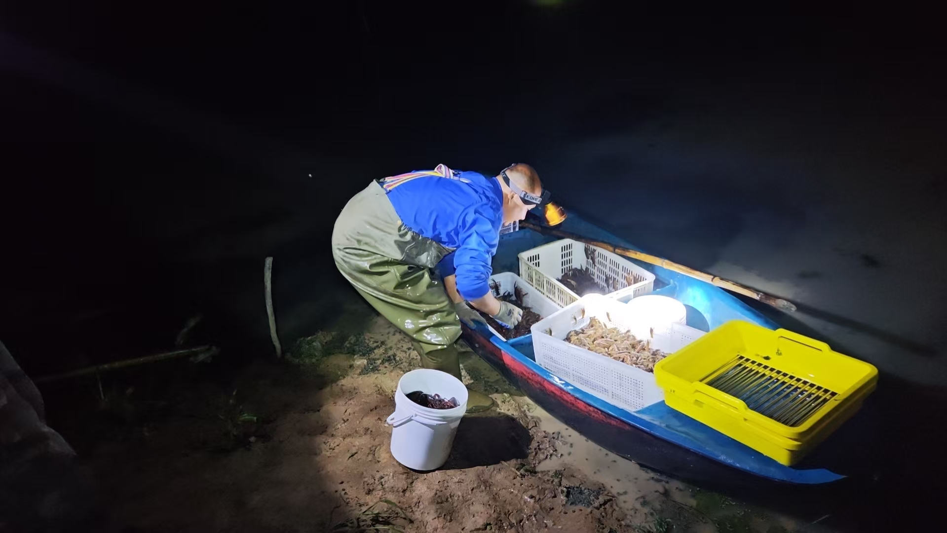 云上咸安报道 夜幕笼罩,万籁俱寂,咸安区向阳湖奶牛场的水产养殖基地却灯火通明、一派繁忙。一艘艘小船划破水面,头灯的光束在夜色中穿梭,养殖户们正趁着凌晨时段,熟练地拉起地笼、分拣龙虾,开启一天的丰收劳作,用汗水守护着这份“深夜的鲜甜”。
