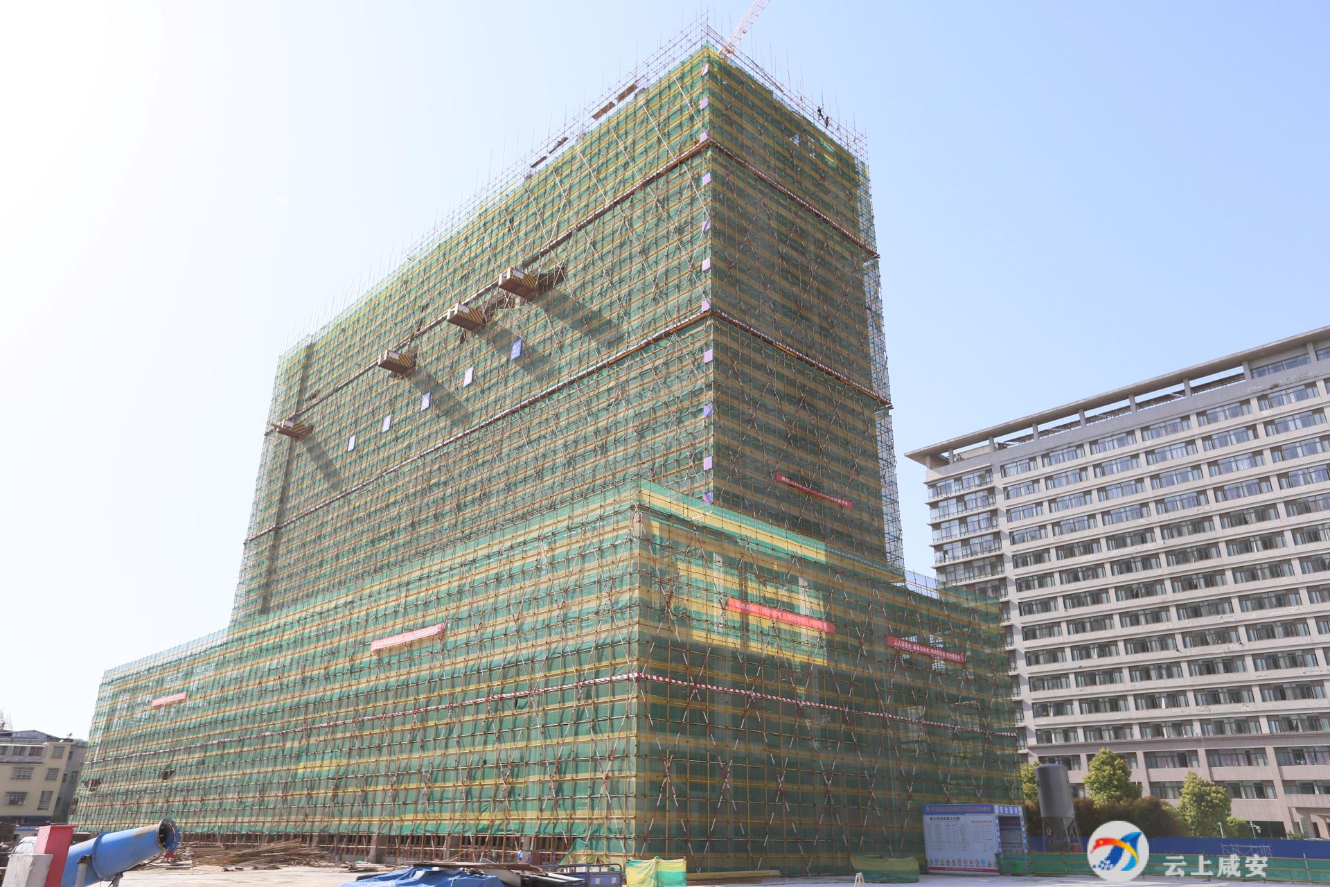 云上咸安报道 3月29日下午,在咸宁市第一人民医院传染病大楼建设现场,记者看到工人们正各司其职,铆足干劲,如火如荼进行施工。
