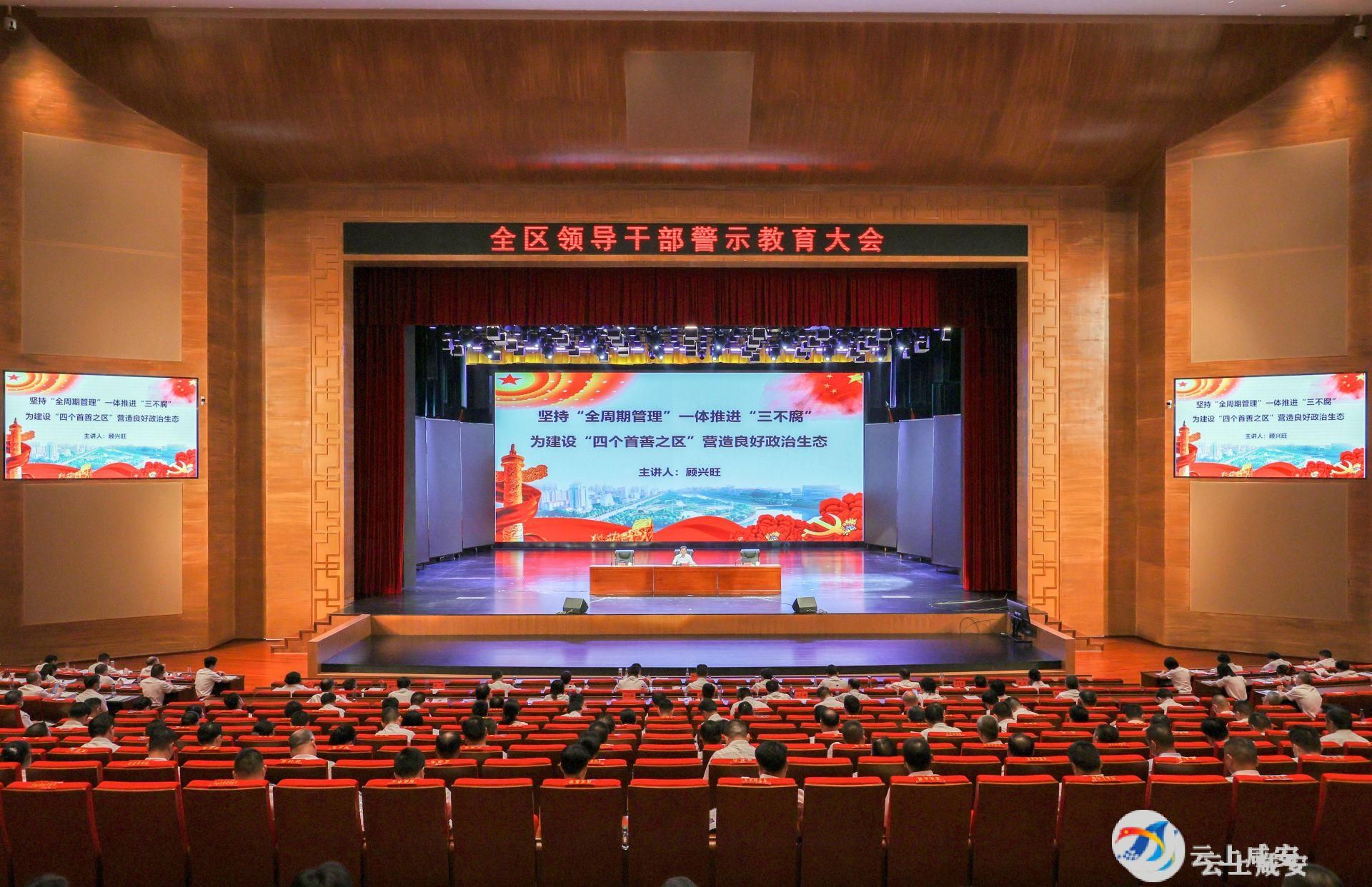 云上咸安报道 8月4日下午,咸安区召开全区领导干部警示教育大会,集体观看警示教育专题片《圈套》,以案示警、以案明纪、以案促改,深入推进清廉咸安建设。区委书记顾兴旺出席会议并讲授廉政党课。区委副书记、区长李军平主持会议。