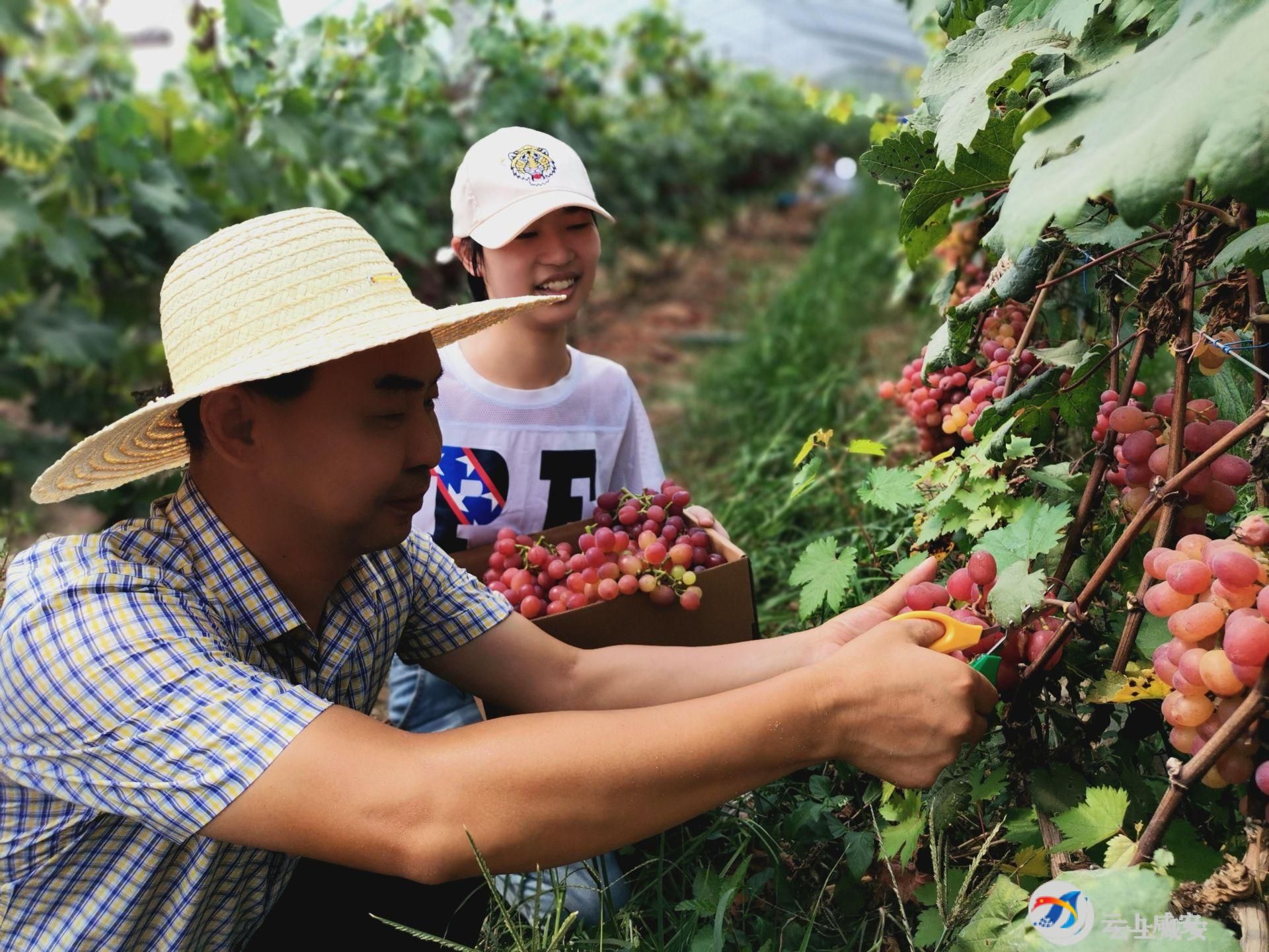 云上咸安报道 一串串葡萄满枝挂,一枝枝甜桃如瀑泻,一声声笑声漾园间……