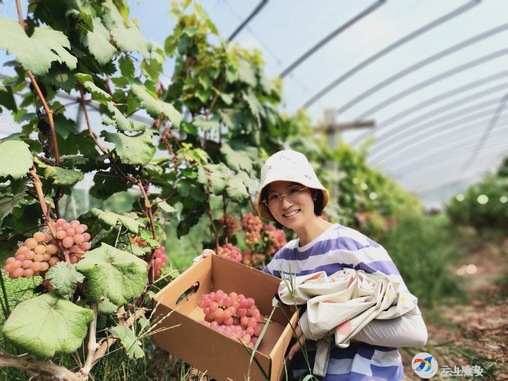“这个棚是阳光玫瑰,这个棚是红美人,因为品质好,甜味浓,每天好多游客前来采摘,一天卖葡萄达8000余元呢。”54岁的合作社负责人张晓明自豪地介绍,晒得黝黑的脸上绽开了花,一身朴素的工服被汗湿。