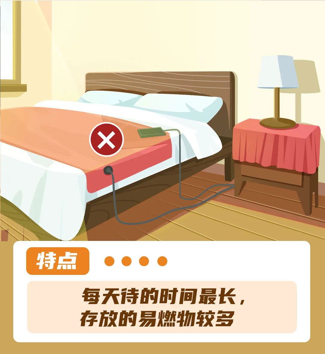 以手机充电为例,虽然方便,但是放在床边充电,有手机爆炸的风险,会直接伤害到床上的人,也会点燃床品,引发火灾。